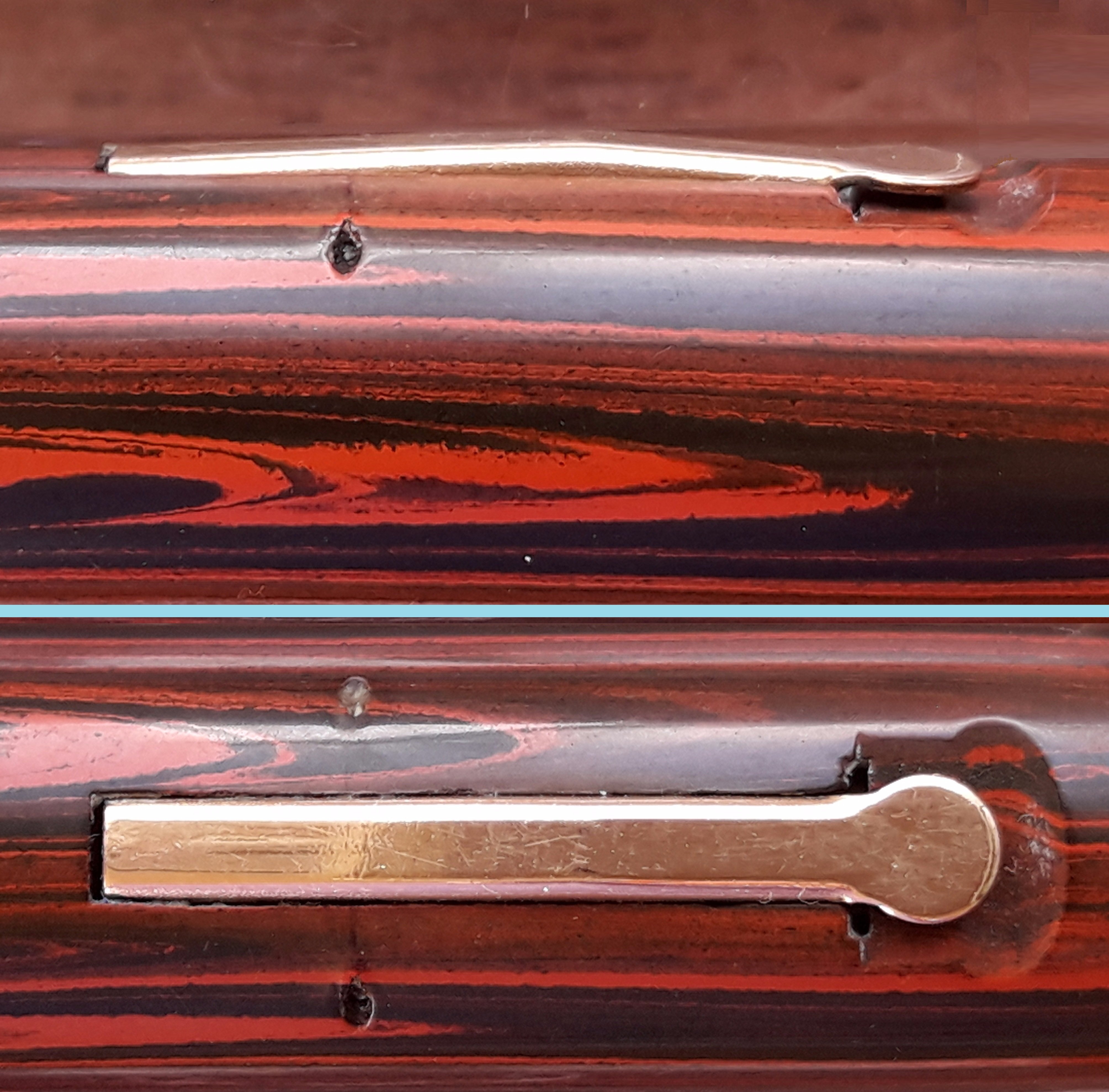 Con tutta probabilità vi deve essere stato un periodo di transizione in cui alcuni elementi della vecchia impostazione convivevano con le nuove soluzioni (penso in particolare ai pennini d’oro, sempre così difficili da smaltire una volta incisi, che nel caso di specie erano in uso almeno dal 1924, come dimostrato dalle pubblicità).