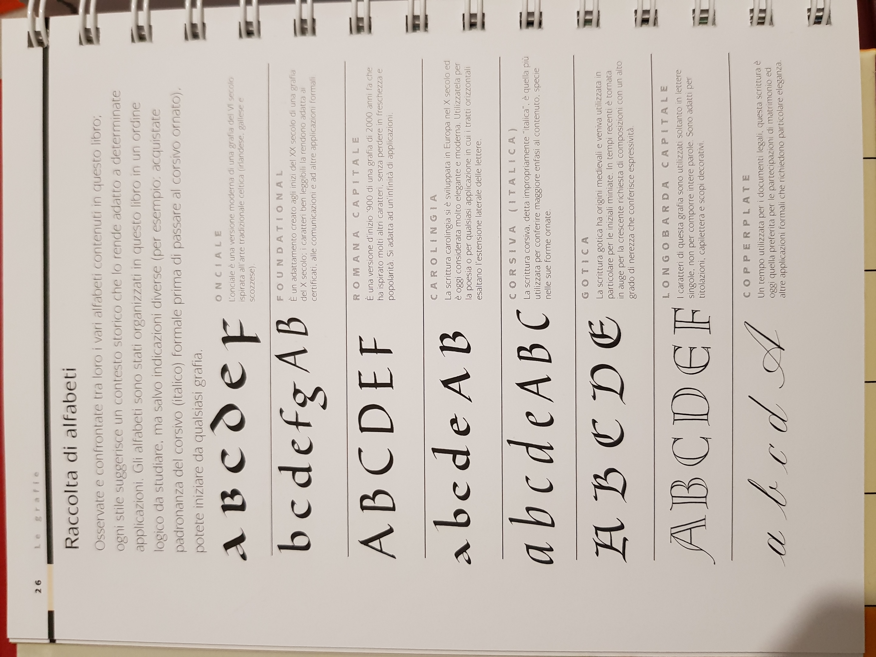 All’inizio del capitolo vengono rapidamente proposti tutti gli alfabeti del libro e successivamente vengono descritte le differenze tra le varie grafie, le varianti e la terminologia ricorrente nella spiegazione dei diversi caratteri.