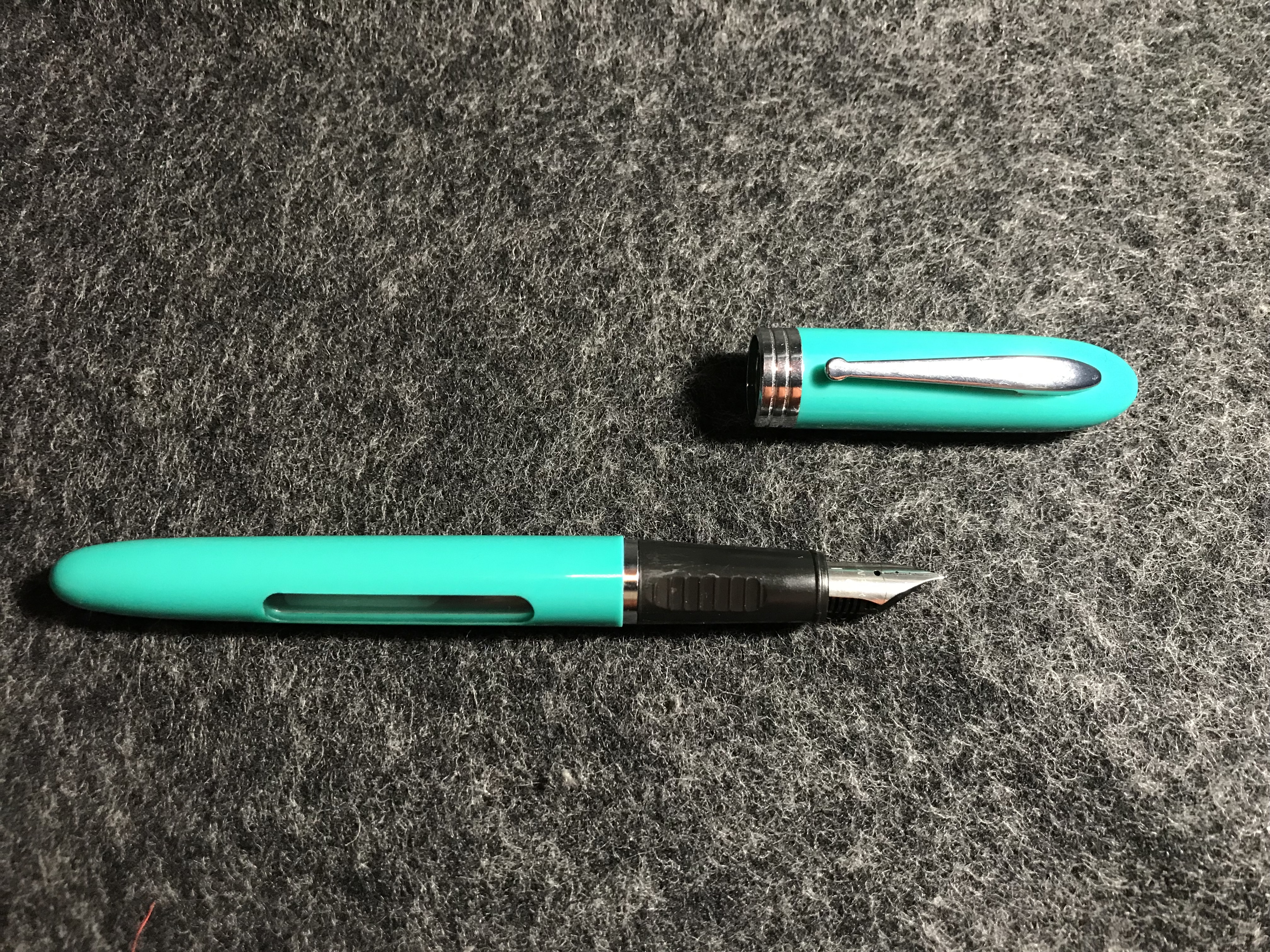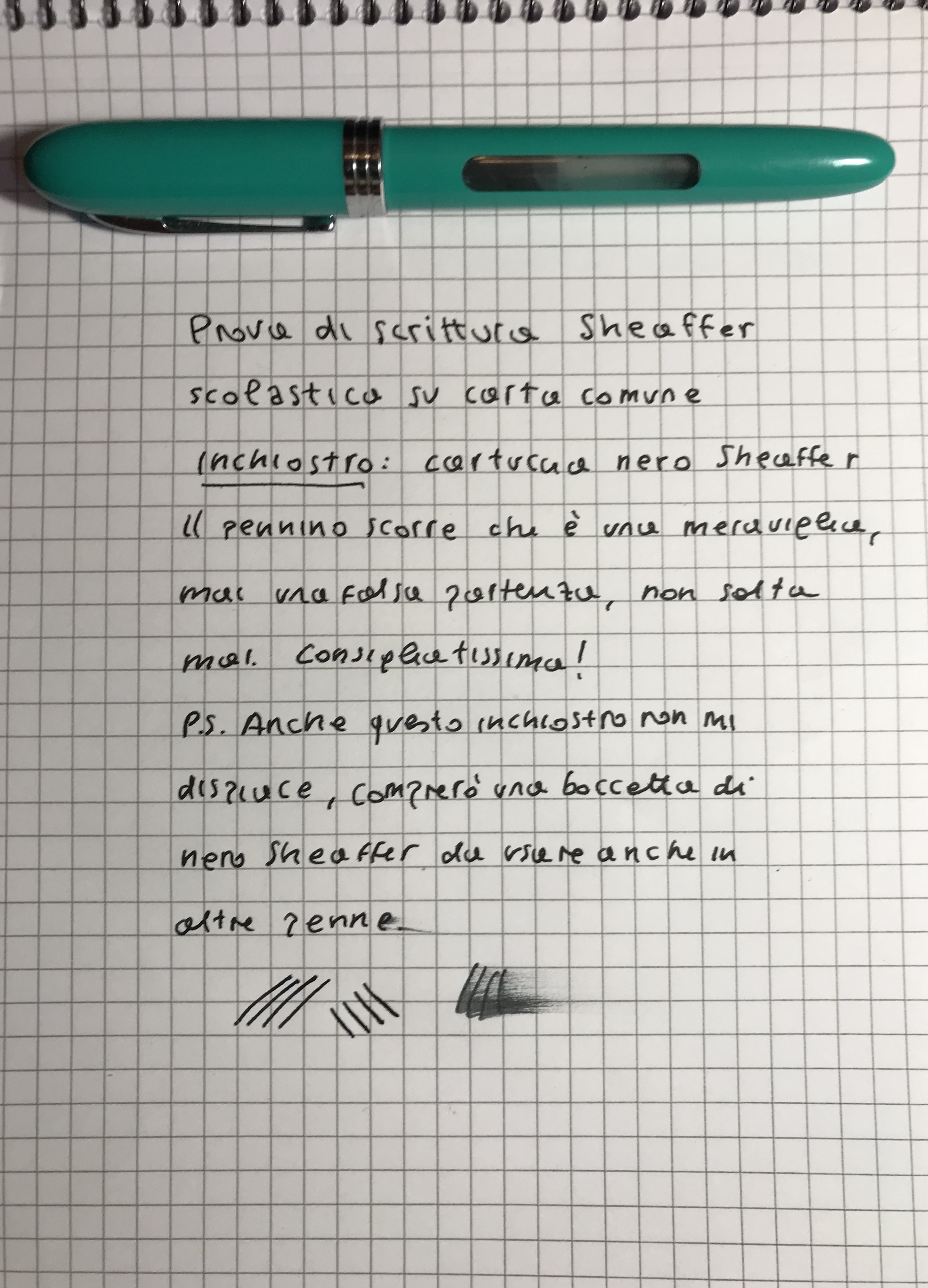 La penna è fantastica per prendere appunti, nessuna remora a buttarla nell'astuccio, ha una finestrella che permette di vedere il livello di inchiostro e permette l'uso di cartucce e anche il converter ci sta senza problemi. Ecco un po' di immagini e una prova di scrittura.