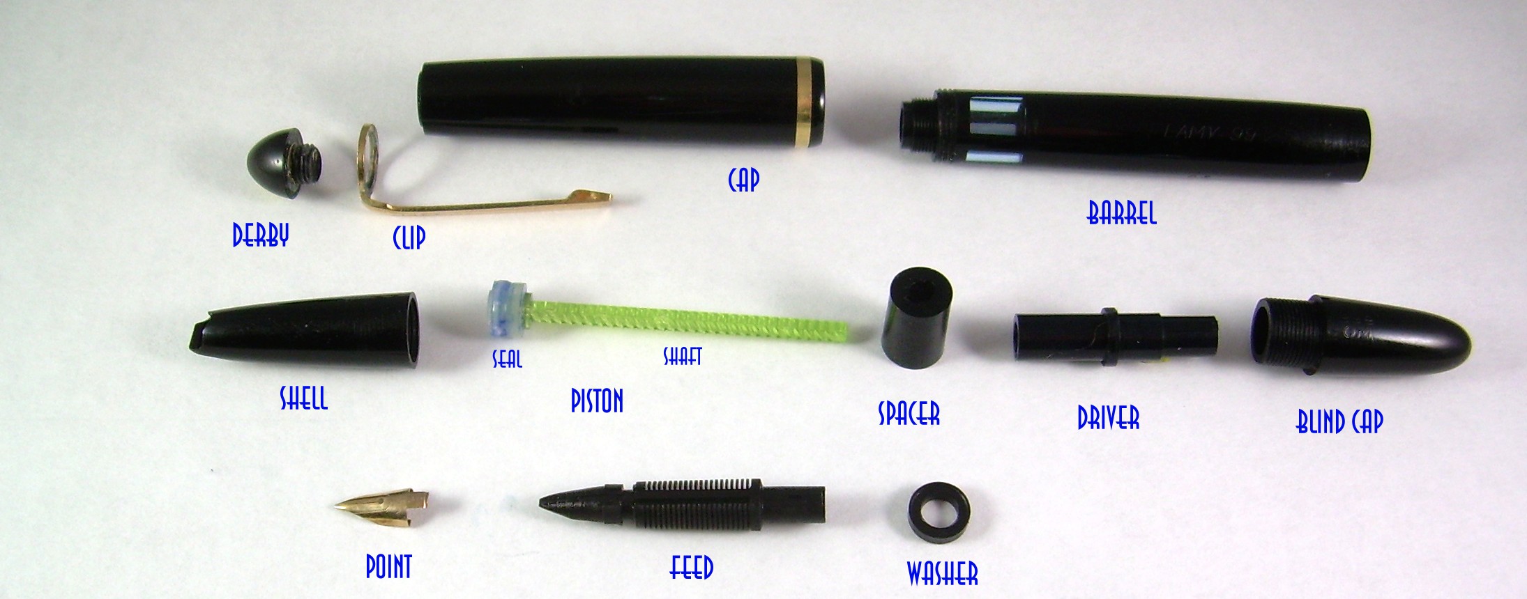 Lo schema è identico a quello della Lamy 2000 dei nostri giorni. Addirittura mi sembra che le parti dello stantuffo siano proprio le stesse.