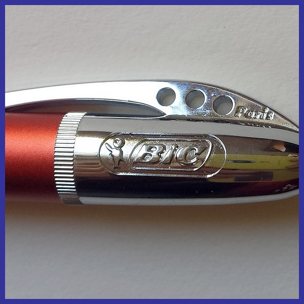 Il look mi piace molto. Il cappuccio ha una clip con tre fori accanto ai quali compare la scritta Paris sul fronte e France sul retro. Anche il pennino ha 10 piccoli fori di areazione in pendant con quelli del cappuccio e alla base del pennino compare la sritta Bic. Lo stile mi ricorda un po' l'immaginario steampunk o della fantascinza... design futuristico con linee abbastanza dolci.