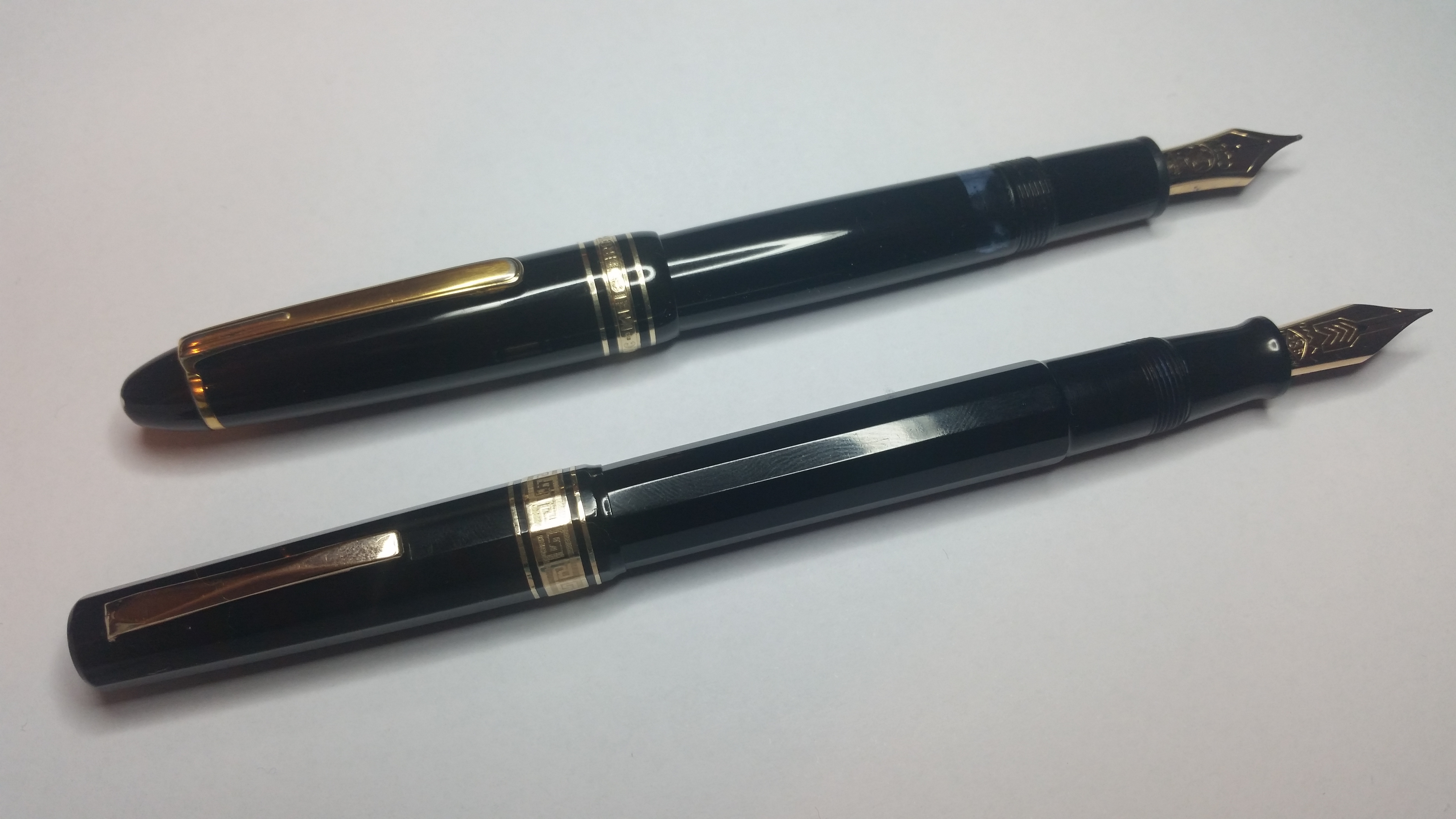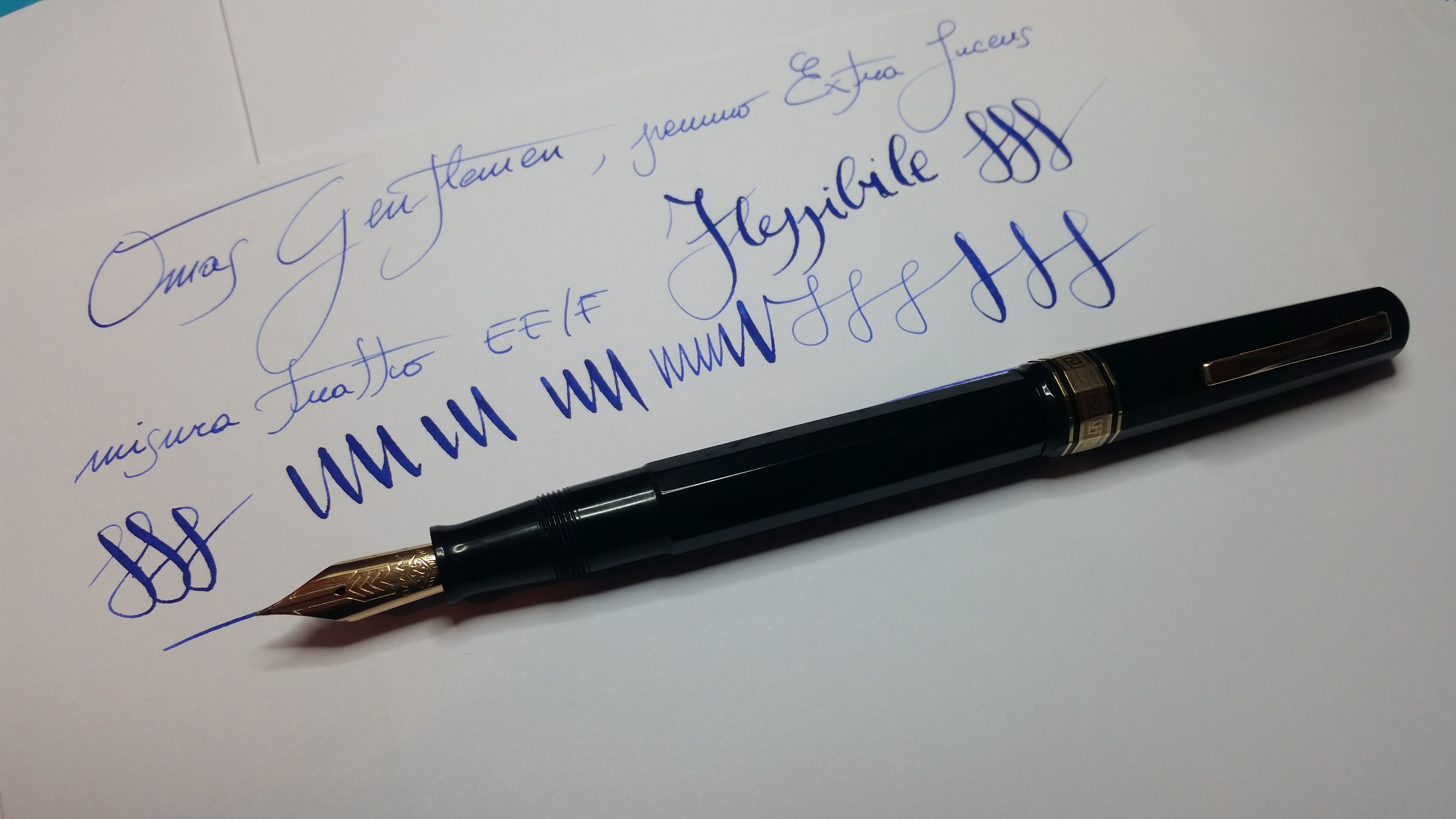 Il pennino è un flessibile davvero incredibile, di quelli che oggi non ne fanno più, ma comunque rimane una penna che posso usare quotidianamente senza timore. Una stilografica grande ma maneggevole, dal design moderno ma comunque classico, pronta a donare tantissime soddisfazioni. Ecco di seguito qualche foto, e qualche confrontotra le dimensioni con una MB 146 (l'inchiostro è un Waterman Serenity Blue)...