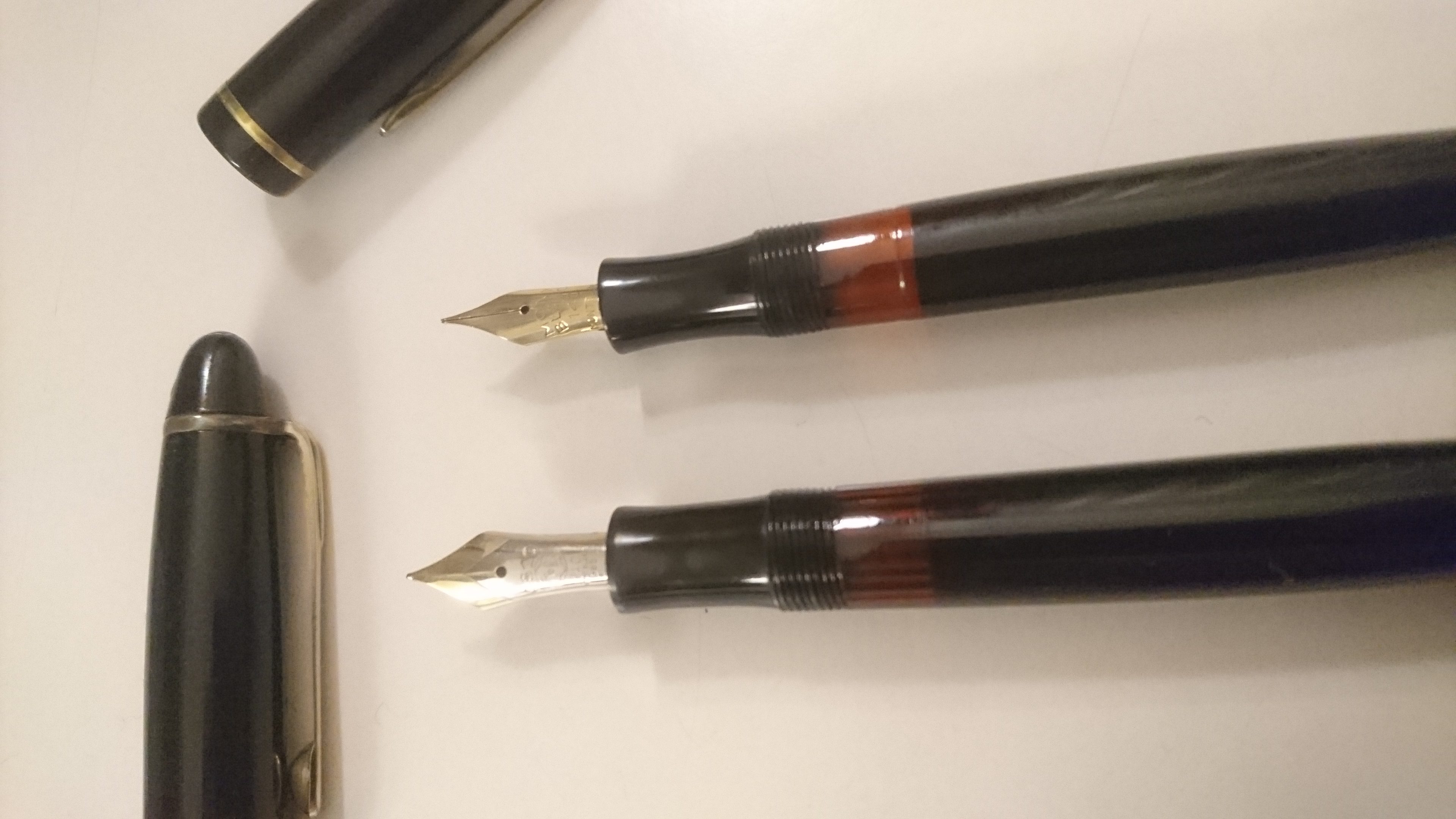 Due Montblanc, una 144 ed una 33, entrambe in celluloide ed entrambe di probabile produzione spagnola: