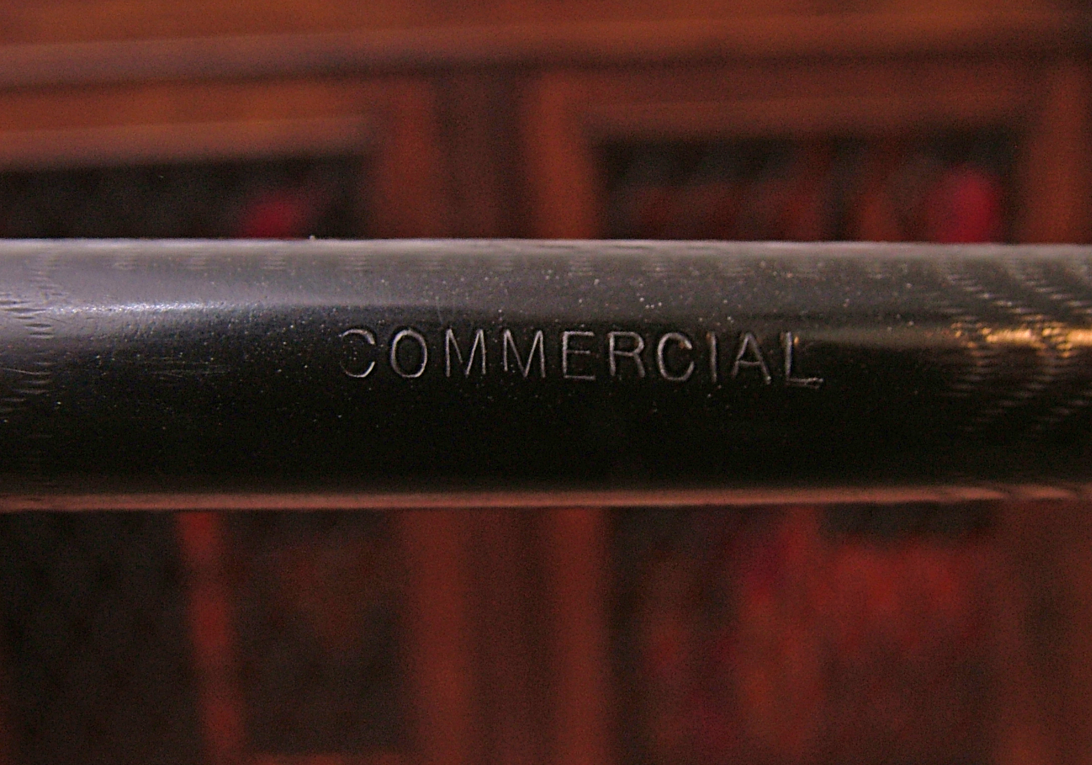 La penna è col solito disegno ad onde in ottime condizioni di usura, il nome sul serbatoio è a me sconosciuto, "COMMERCIAL" ed in giro per la rete non ho trovato alcuna indicazione, l'unica cosa che ho notato ha l'alimentatore simile alla penna pubblicata da Luca C, la safety in ebanite "Perry & Co.