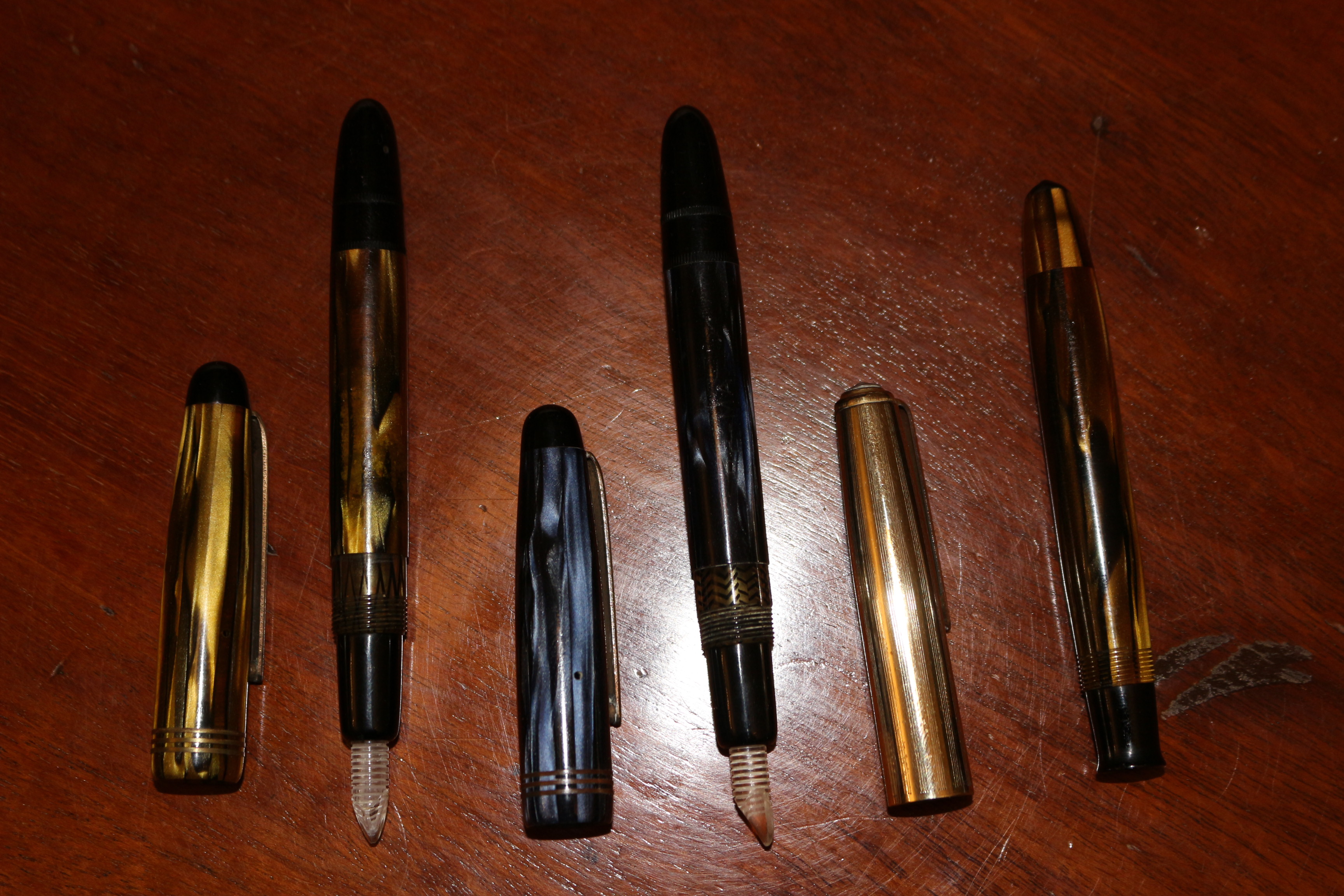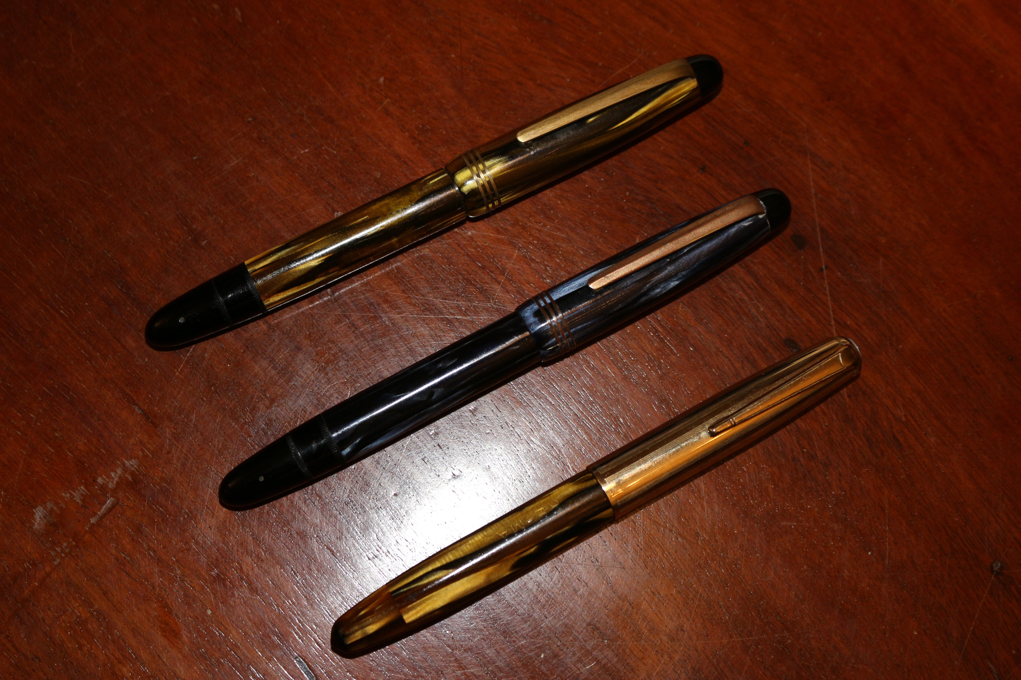Due sono a pistone e l'altra a levetta. Le due a pistone hanno un curioso alimentatore di resina trasparente.