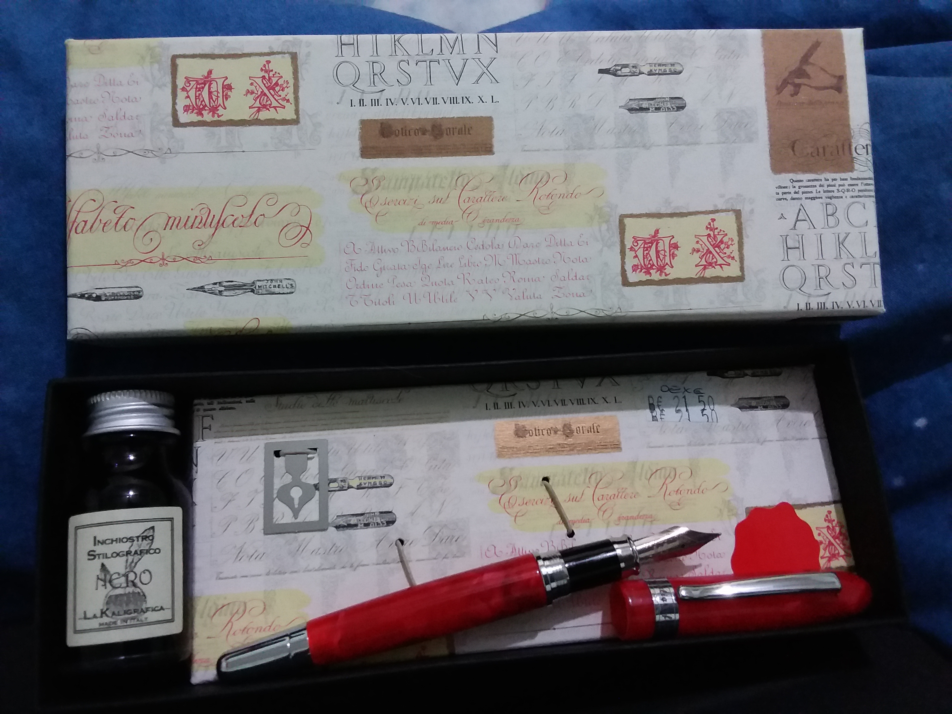 ne ho acquistata una. Marca La Kaligrafica. A casa ho provato il pennino, scorre ma con la flessibilità di un chiodo. Oltre a me, qualcun altro possiede penne di questa marca? Sulla nostra Wiki non l'ho trovata fra i marchi. Io, come sempre, molto ignorante
