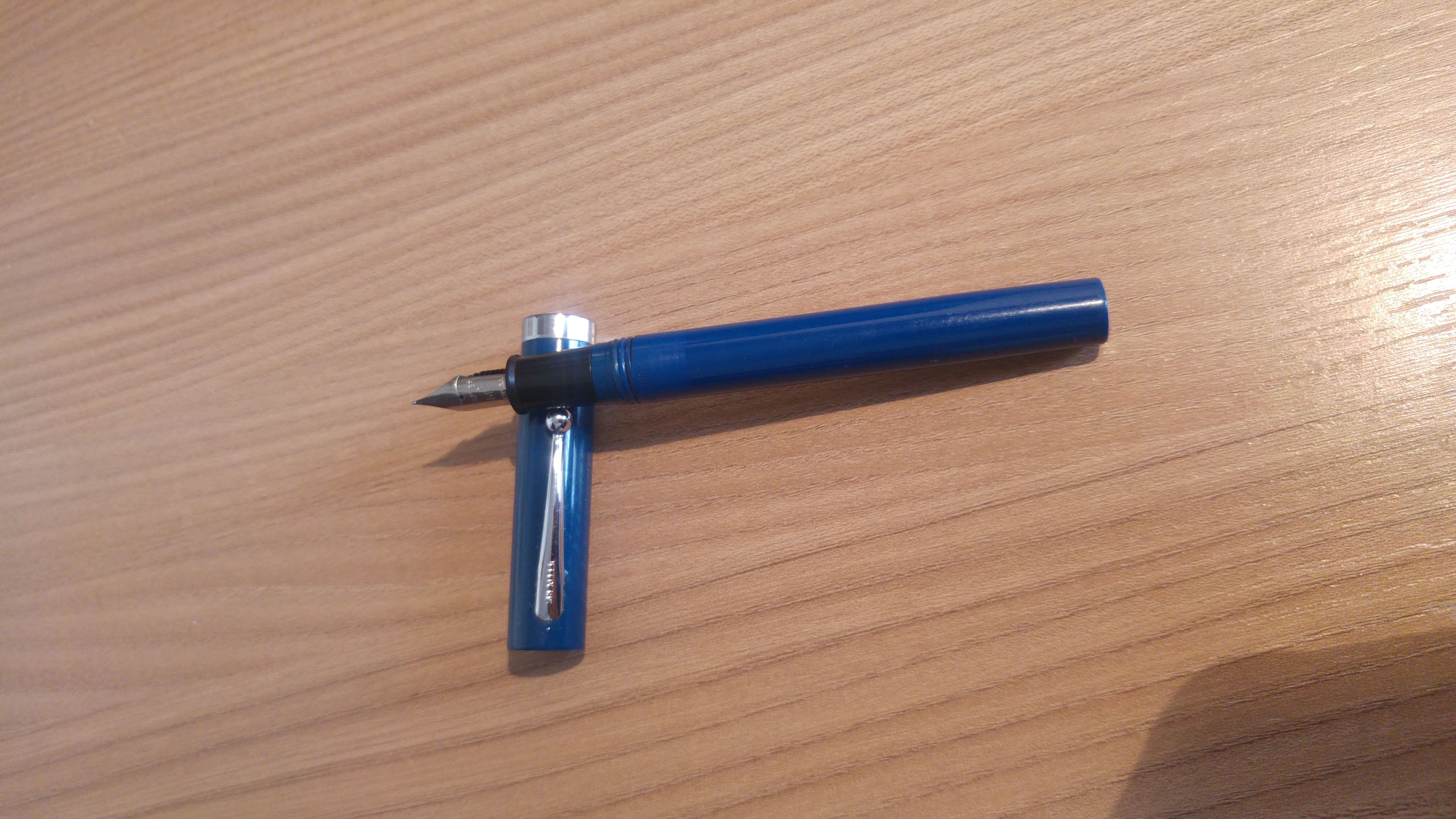 Salve, ho una da parecchi anni, era compresa nell'acquisto di una rivista ma non ricordo quale. La utilizzo ogni tanto usando la sua cartuccia originale che riempio con la siringa in modo da utilizzare l'inchiostro che mi piace. Il pennino,marchiato M, scrive bene e si può ridurre il flusso con un inchiostro poco fluido.