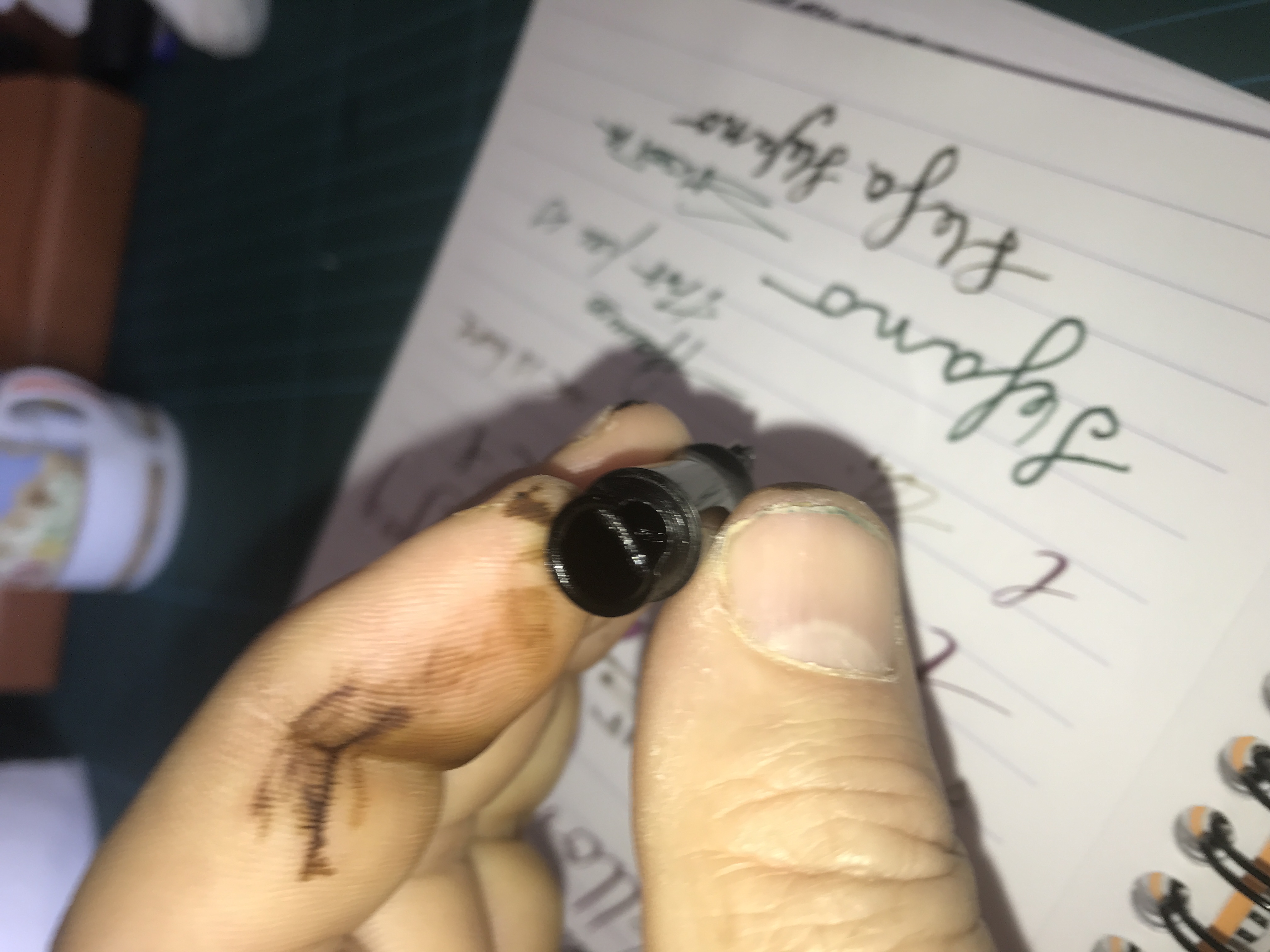 Non solo, ma il pennino deve stare in una certa posizione, ovvero col foro di sfiato in corrispondenza della tacca.