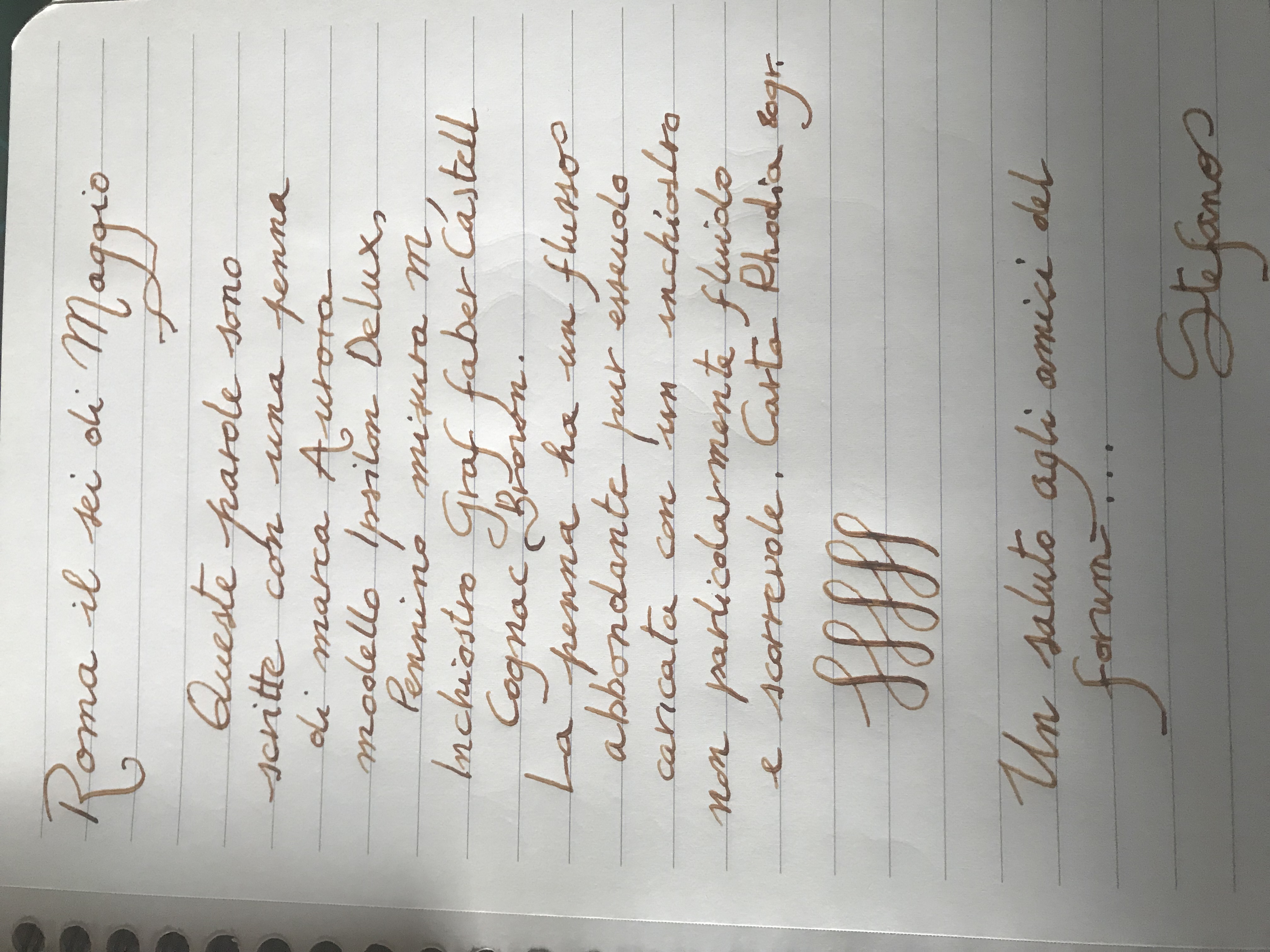 Ti sarei grato se potessi postare un esempio di scrittura.Stormwolfie ha scritto: ↑domenica 6 maggio 2018, 18:45 Confermo le impressioni, ne ho una bordeaux M che scrive benissimo con flusso abbondantino.