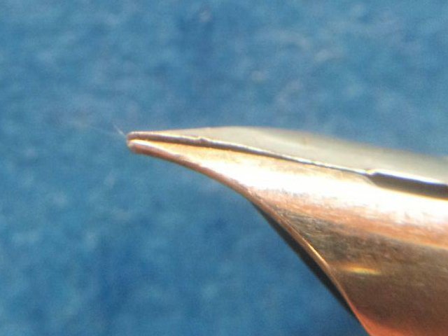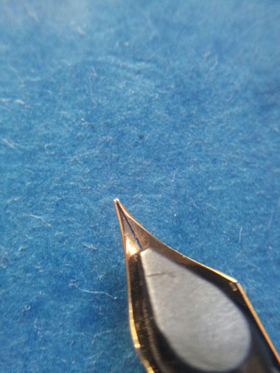 Con la pinzetta allinei le punte abbbassando quella più alta, lavoro da fare delicatamente in più riprese altrimenti corri il rischio di avere l'effetto contrario, ti trovi il rebbo più alto che diventa il più basso.
