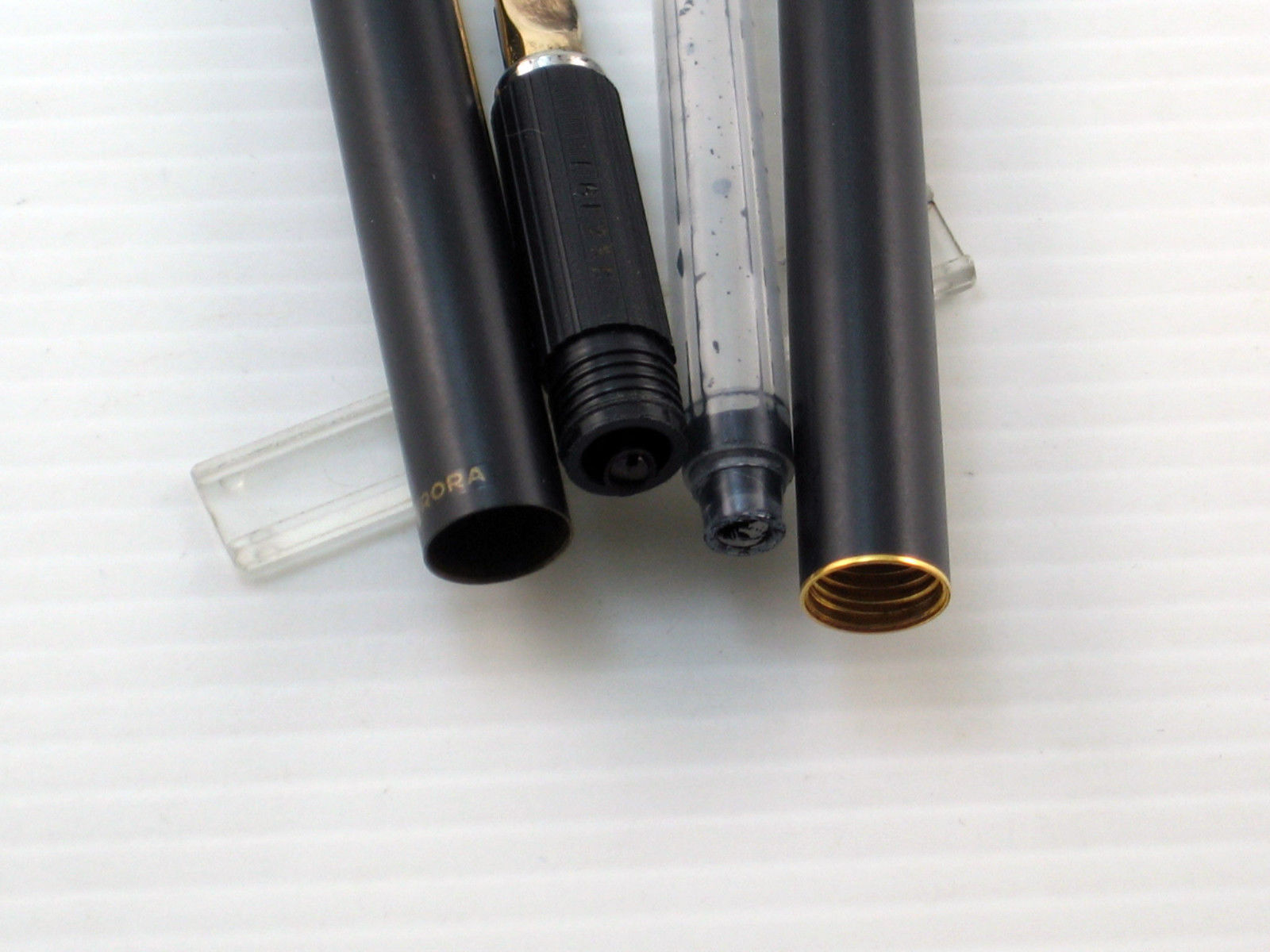 Per quanto riguarda la cartuccia tagliata è di quelle che inseriscono all'interno delle penne per impedire che quella carica si sfili a causa di urti vari.Sono delle pseudo cartucce in quanto sono aperte alle due estremità. Siccome nella Hastil "difettosa" la cartuccia Pelikan non è perfetta ho pensato di tenerla bloccata con lo stesso sistema.