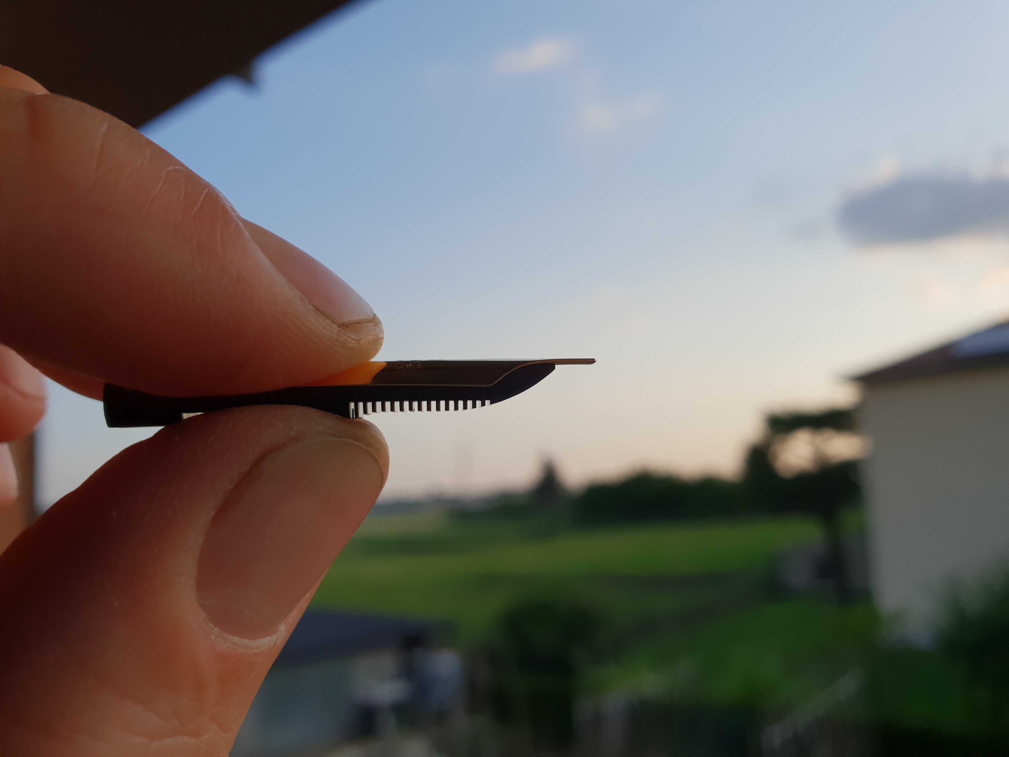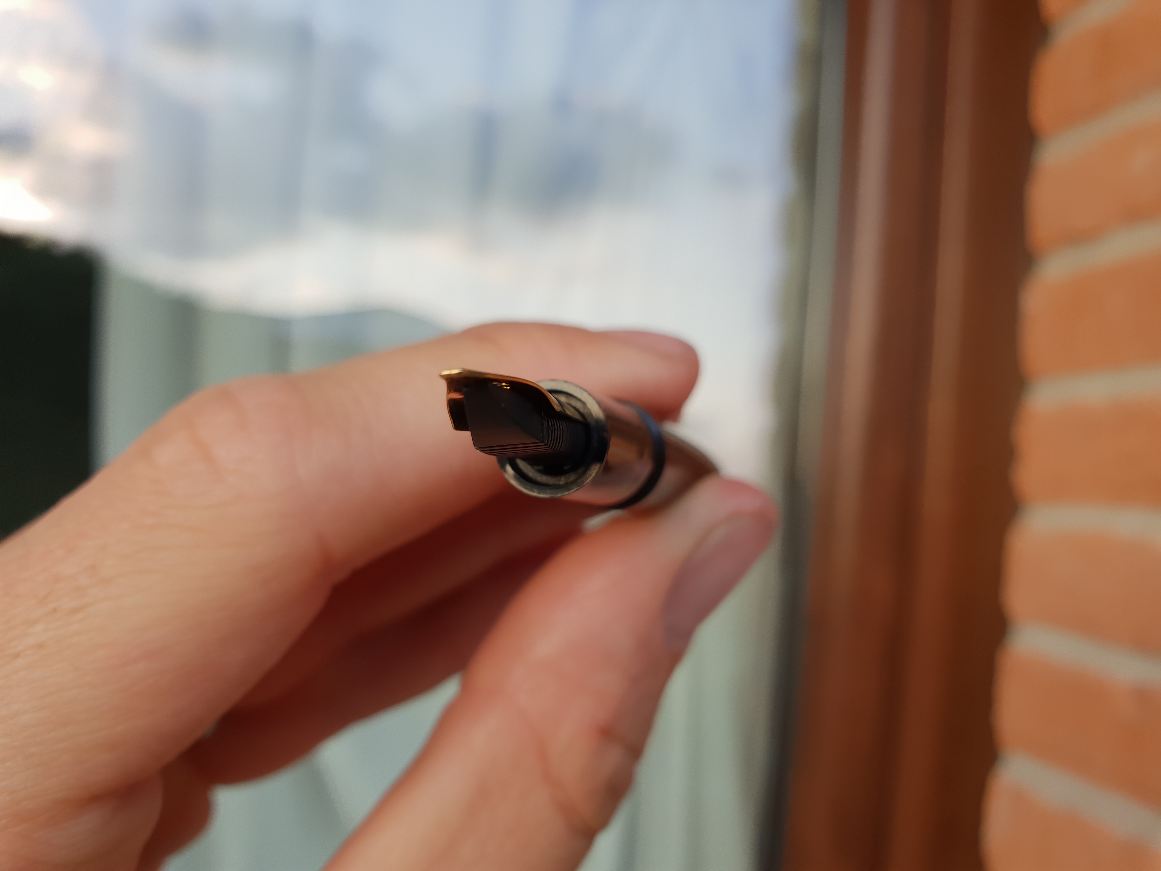 Ad una prima occhiata sembrerebbe tutto a posto Ma ad un esame più attento si nota che l'alimentatore non copia perfettamente il pennino Di seguito delle foto da varie angolazioni. Non si vede chiaramente lo spazio tra alimentatore e pennino, ma si vede attraverso i fori di areazione del pennino. Ne ho fatte sia tenendo il tutto assieme tra le dita, sia inserito nella penna. Attendo lumi dai Guru della sezione