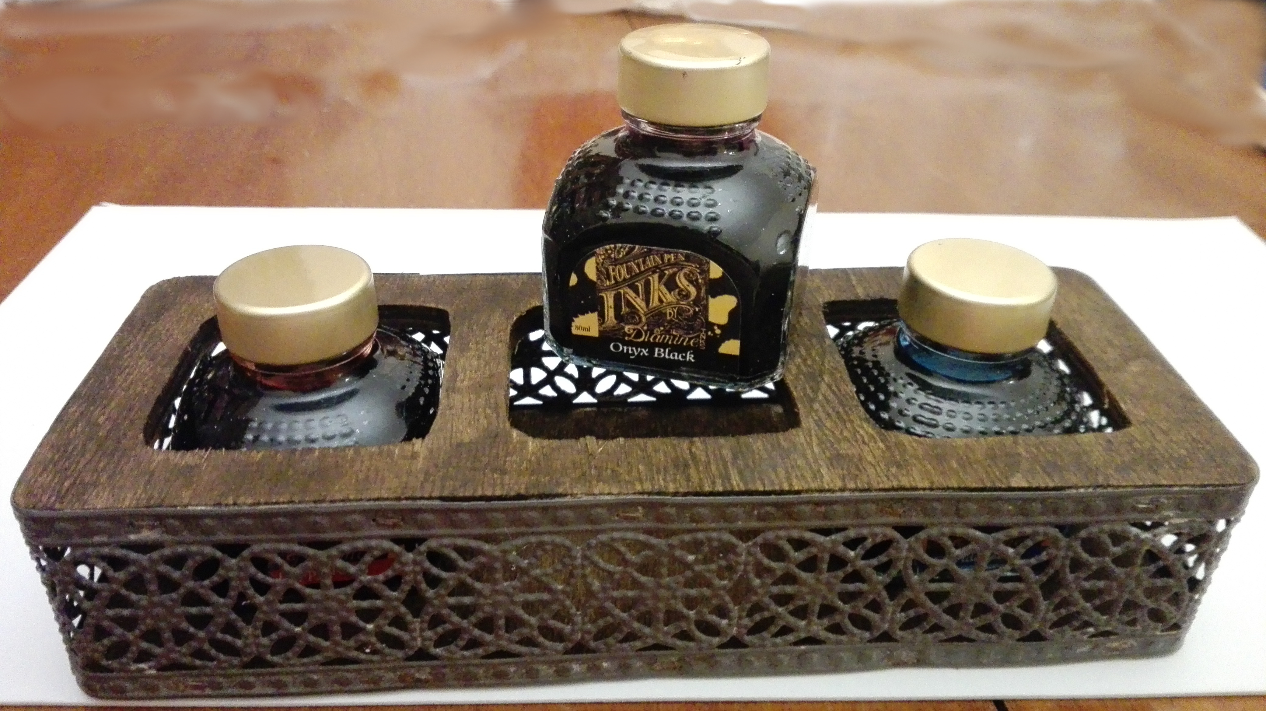 L'idea mi è venuta guardando in rete dei portacalamai in bakelite degli anni 70 (loro si erano bellissimi :roll: )...