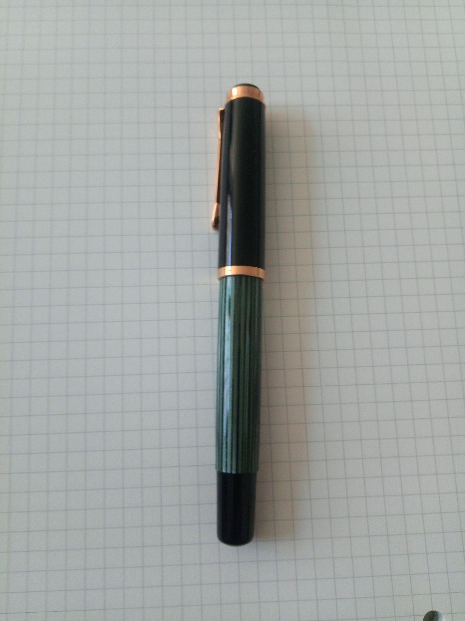 Ieri ho fatto un raid al locale mercatino e tra le varie mercanzie che andro' mostrandovi prossimamente ho trovato quella che ho identificato come una Pelikan Souveran M400 (ma potrei sbagliarmi, e' la mia prima Pelikan), con pennino BB che e' quello che me l'ha fatta comprare. Esteticamente appare nuova, non un graffio, non una crepa (che io possa vedere), sembra tenuta molto bene.