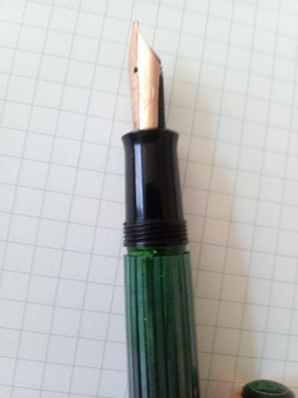 Non conosco le 400 moderne quanto le vecchie, ma direi che lo scalino ben visibile nell'ultima foto, al di sopra della sezione parrebbe essere causato dallo scivolamento dello strato superiore (quello con le righe) su quello inferiore (verde trasparente) dai quali è costituito il corpo della penna.