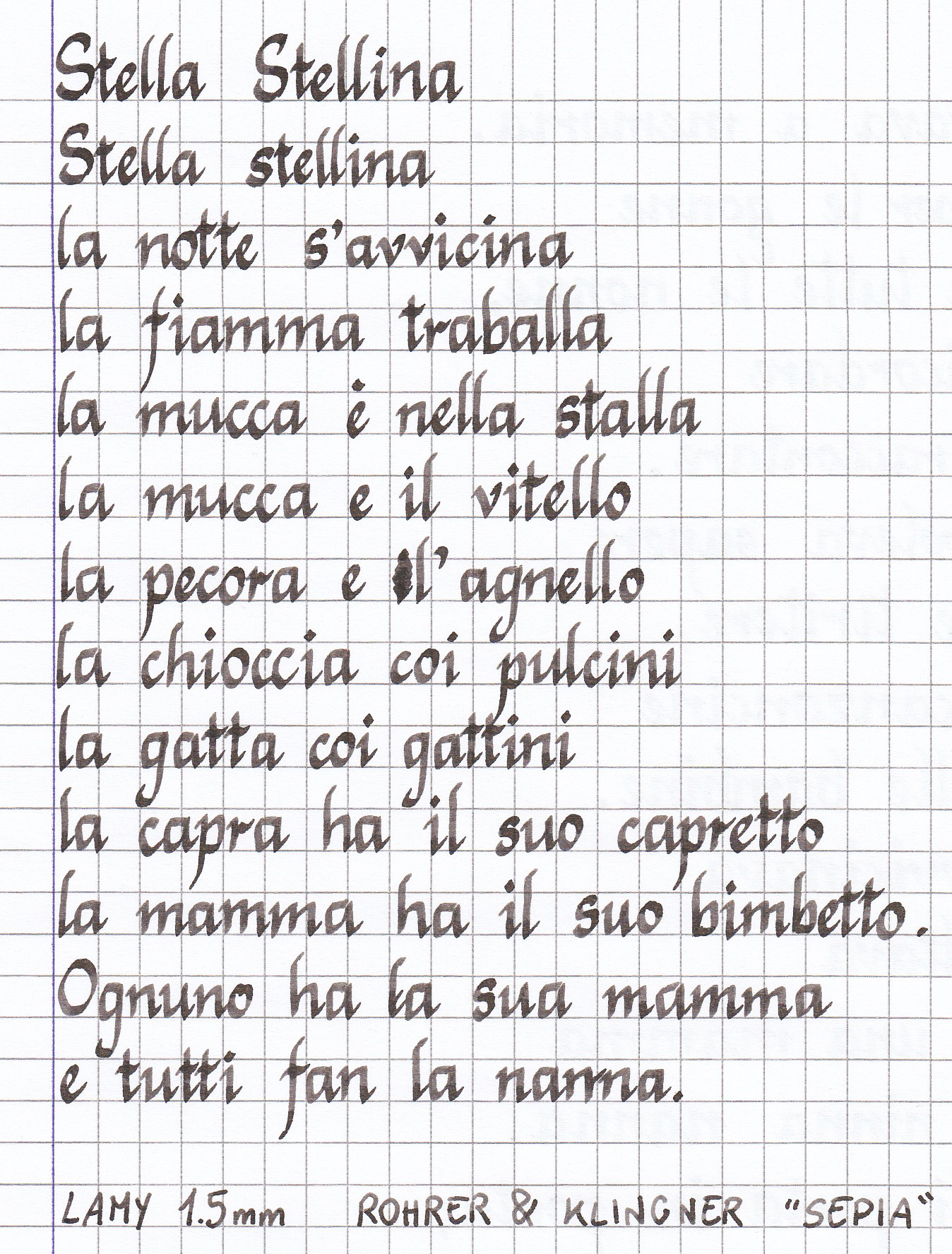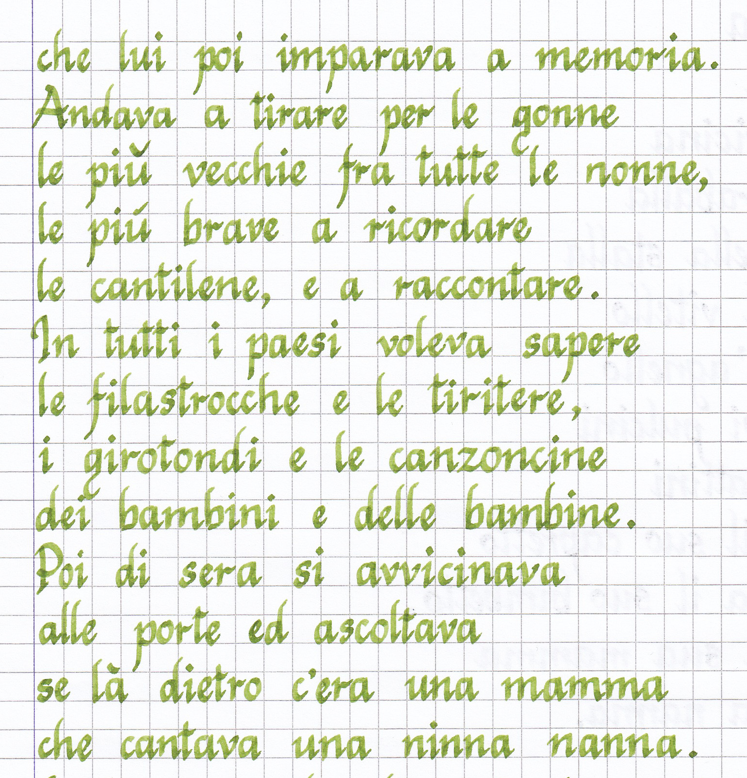 Ho copiato una filastrocca italiana in Italico, poi la scannerizzo.