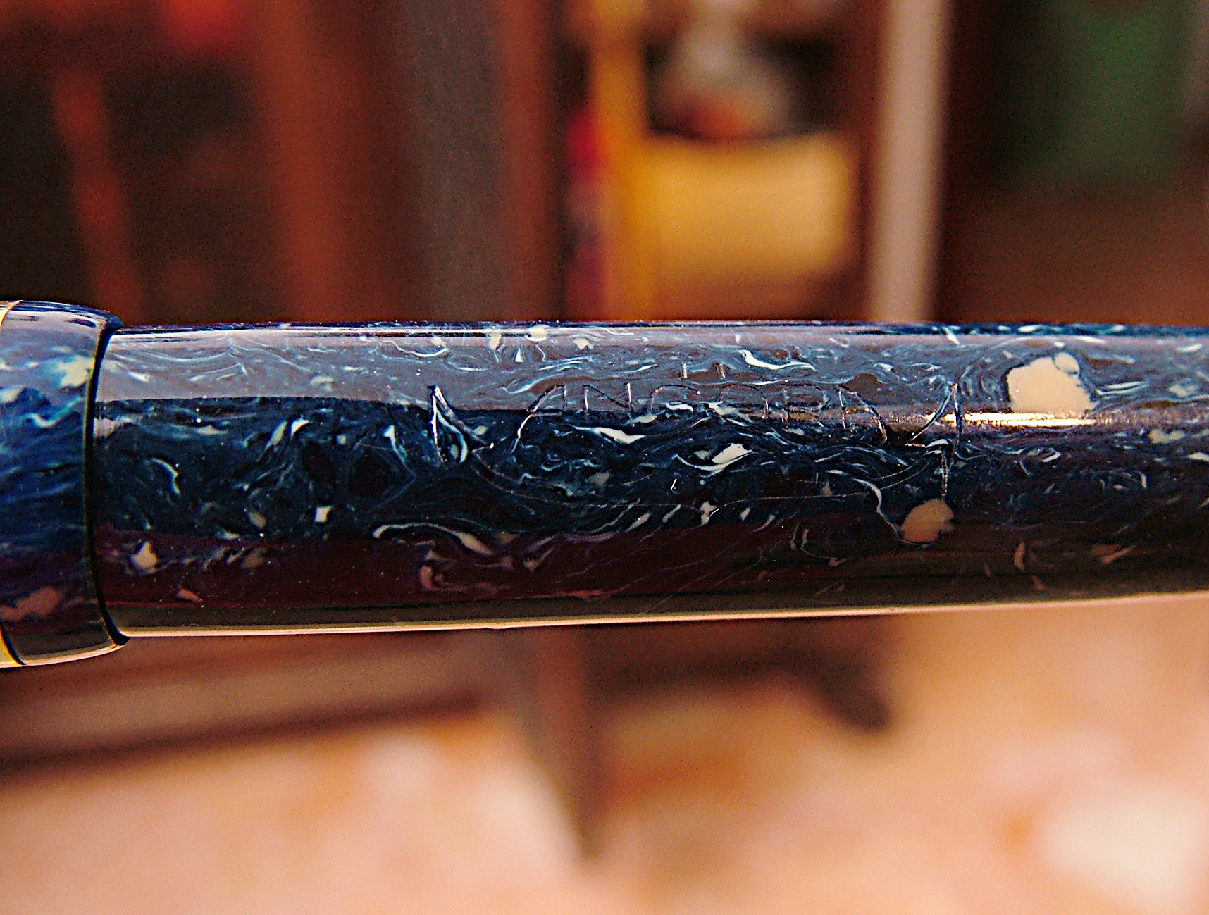Ultima preda datami da uno dei miei fornitori, una bella Ancora Flat top Blue Lapislazzuli di misura piccola, ma grazie al suo diametro è usabilissima soprattutto col cappuccio calzato posteriormente, l'unico neo è che purtroppo è orfana del pennino.