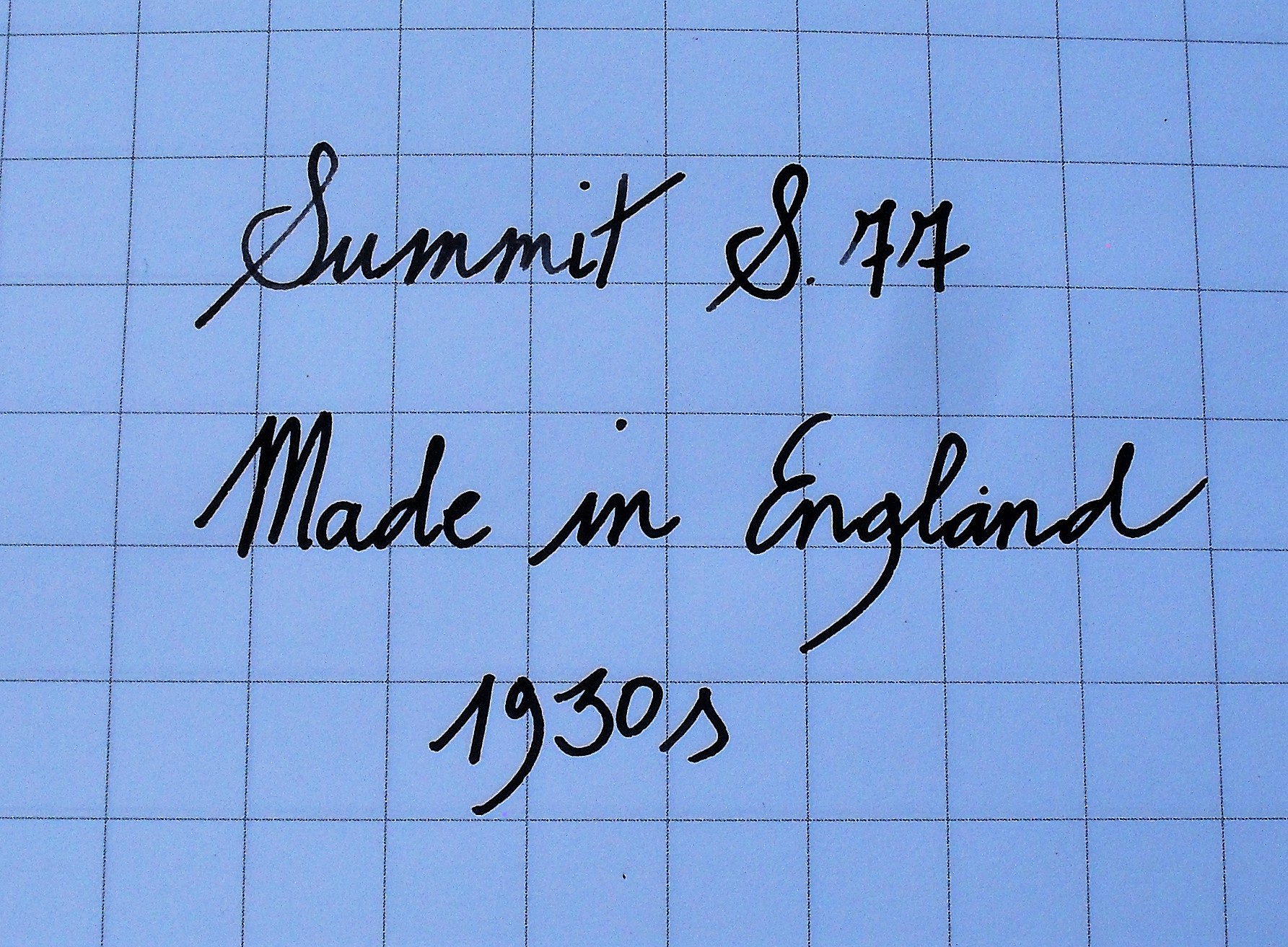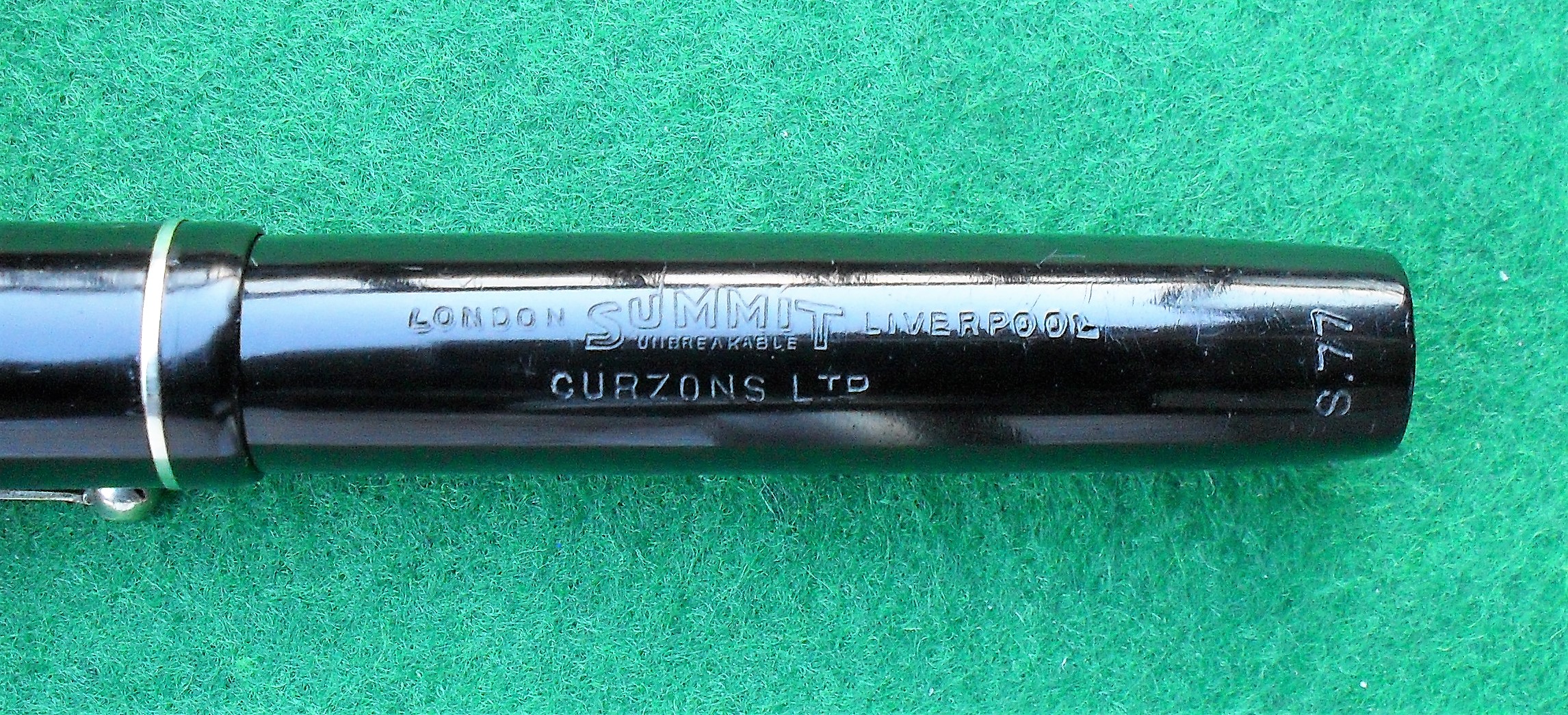 - il tipo di levetta, tipico della serie “H” e della prima parte della serie “S” di stilografiche a marchio Summit, con il terminale circolare nel quale sono impresse le lettere “LC”, per Lang Curzon, le due aziende che a quel tempo componevano il gruppo di Liverpool: la prima dedicata alla produzione, la seconda alla commercializzazione.