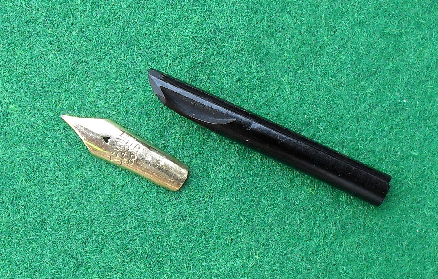 Probabilmente a causa di un tentativo un po’ maldestro di rimozione, il pennino aveva alla base un avallamento, che ho potuto rimuovere quasi del tutto agendo dall’interno con uno stuzzicadenti da cocktail.