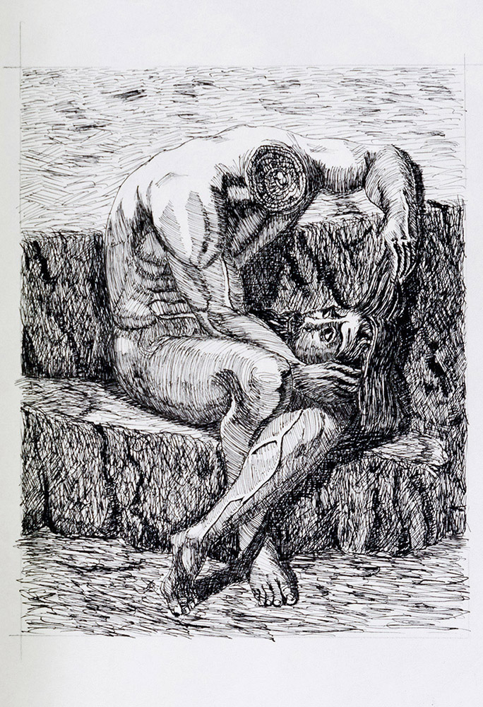 Ho deciso di copiare una sua incisione e di riportarla su carta, ho usato un pennino tachikawa inchiostro pelikan brillant black, carta fabriano.
