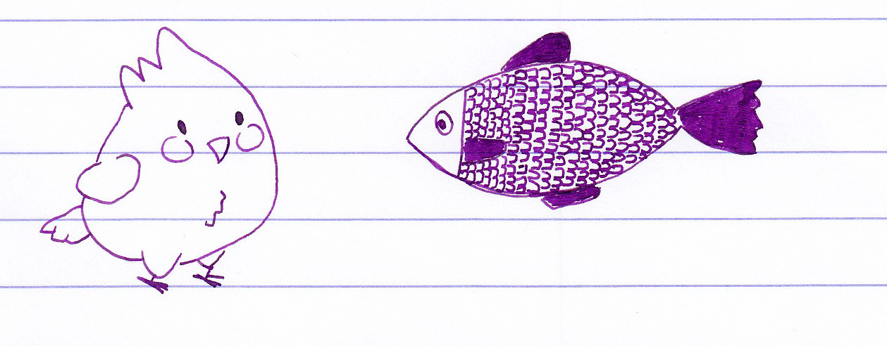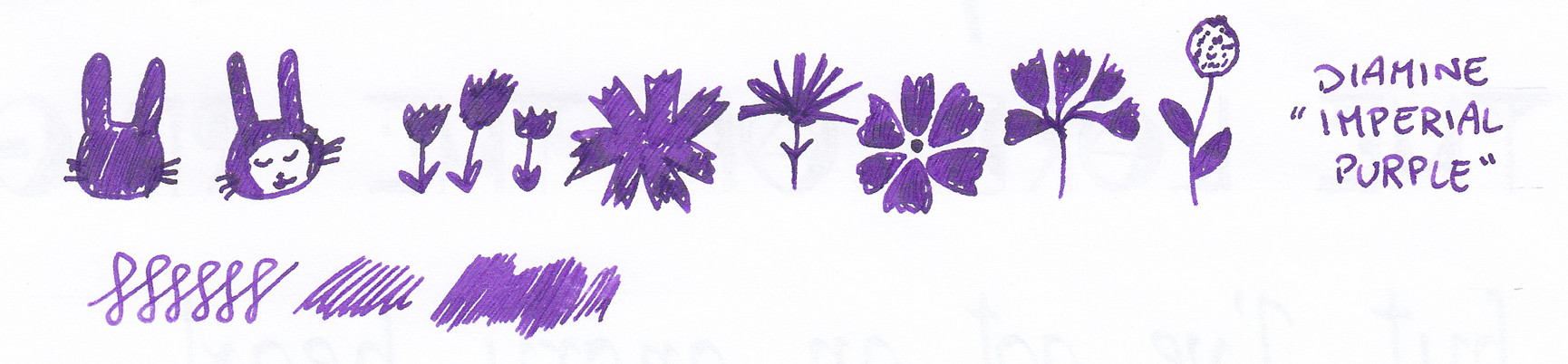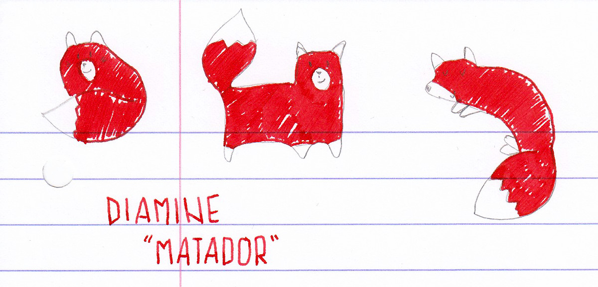 Diamine Imperial Purple su Rhodia. Un inchiostro difficile da lavar via ma con una bella patina dorata. Qui mi ero dimenticata di ripassare gli occhi delle volpi con un inchiostro nero e sembravano cieche. Ad un mio corrispondente sono comunque piaciute.