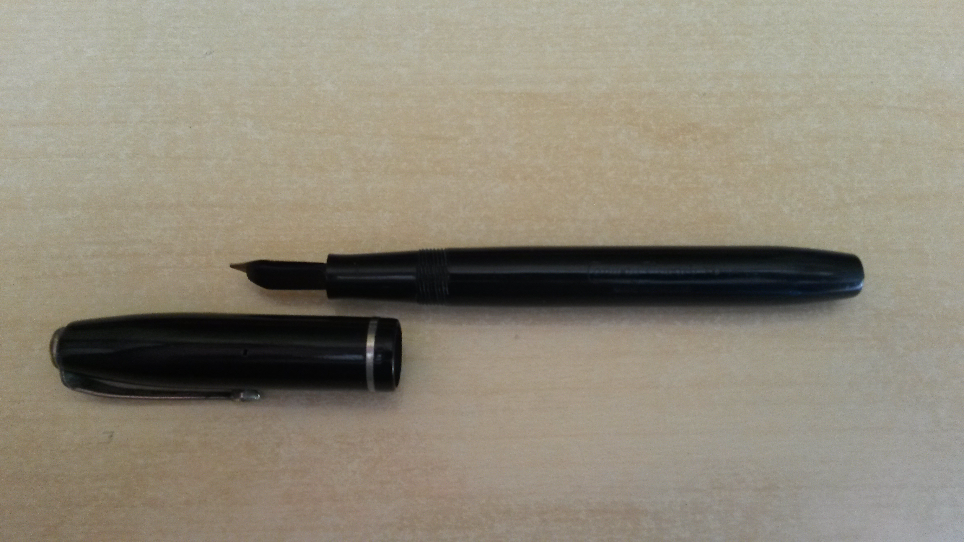 Ritengo estremamente improbabile l'utilizzo della galalite per una penna nera. Se al tatto è fredda come un sasso potrebbe essere galalite. Sennò, probabilmente è celluloide.