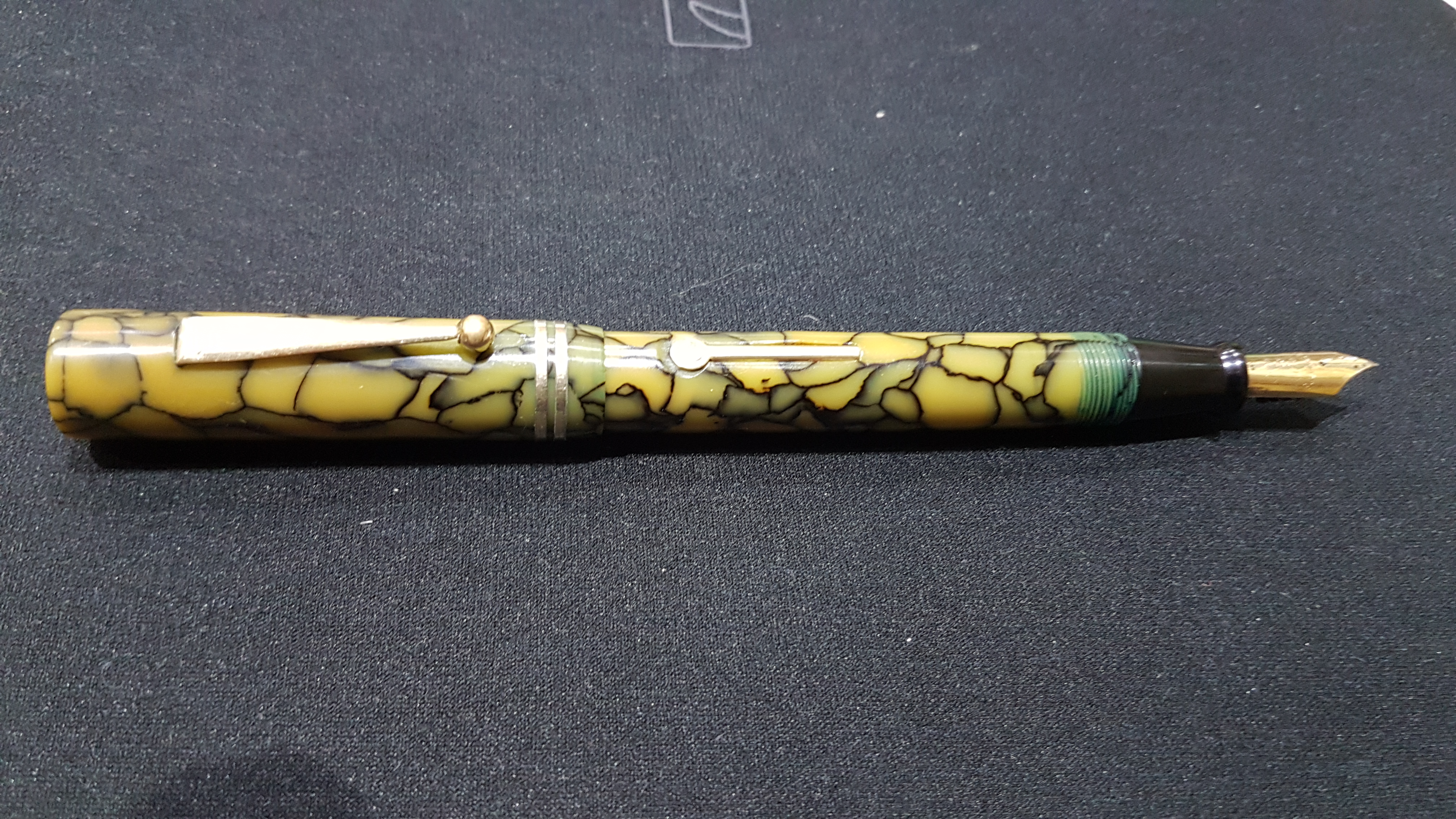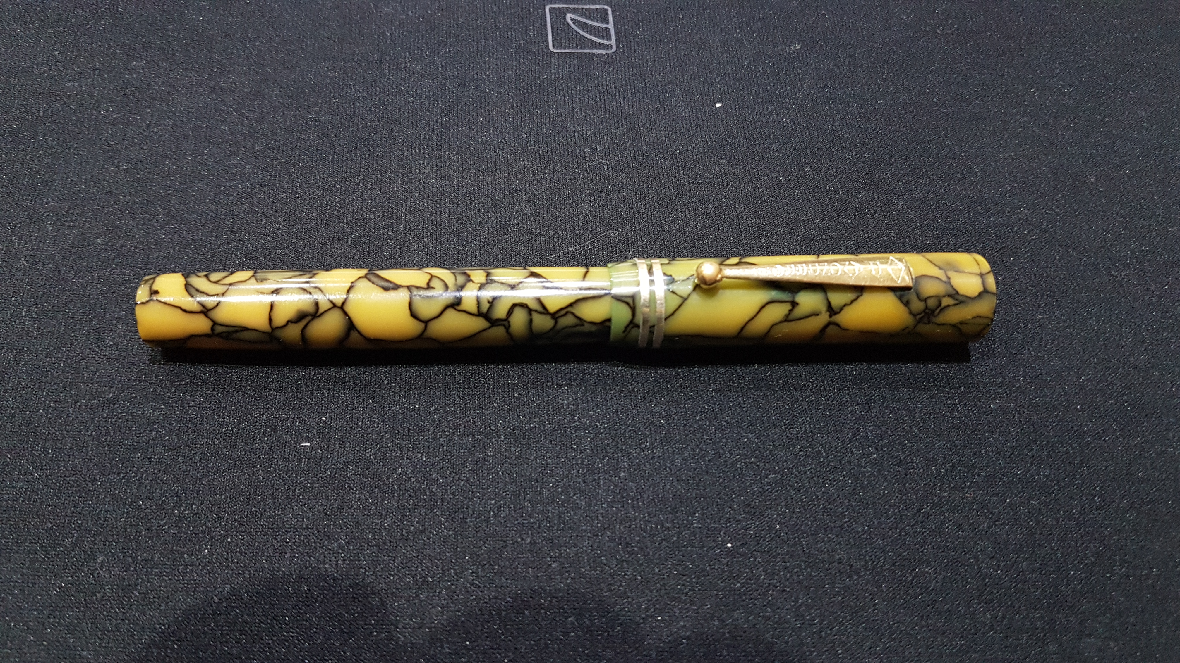 Complimenti, gran bella penna, peccato per la colorazione presa, ma con quella celluloide è difficile trovarle a posto, e questa mi pare comunque messa molto bene.