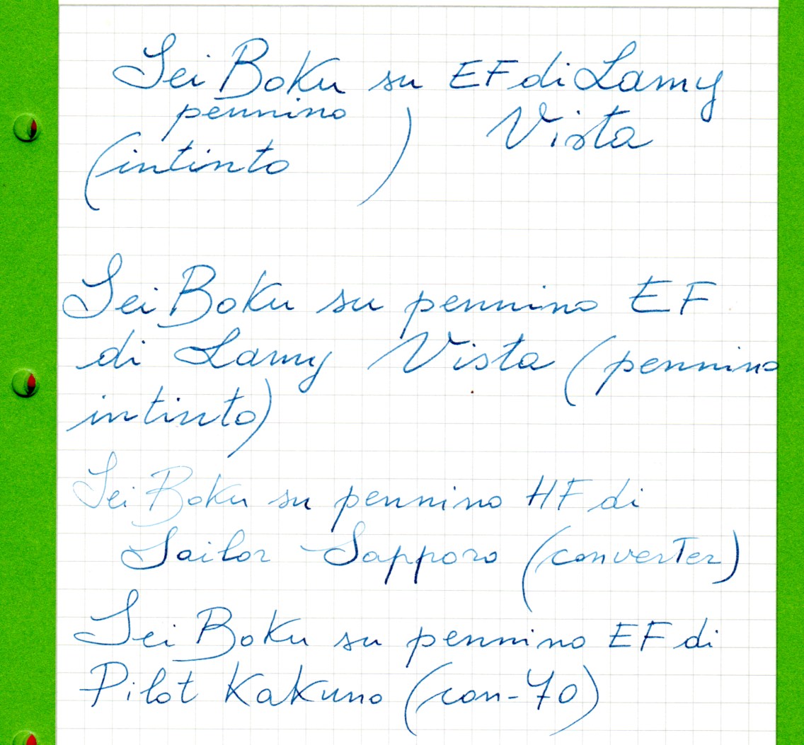 Vorrei tanto dedicare a questa penna il Sei Boku che però con lei appare azzurro senza quelle nuances per me strepitose. Chiederò in negozio se posso ancora metterle un M al posto del HF.
