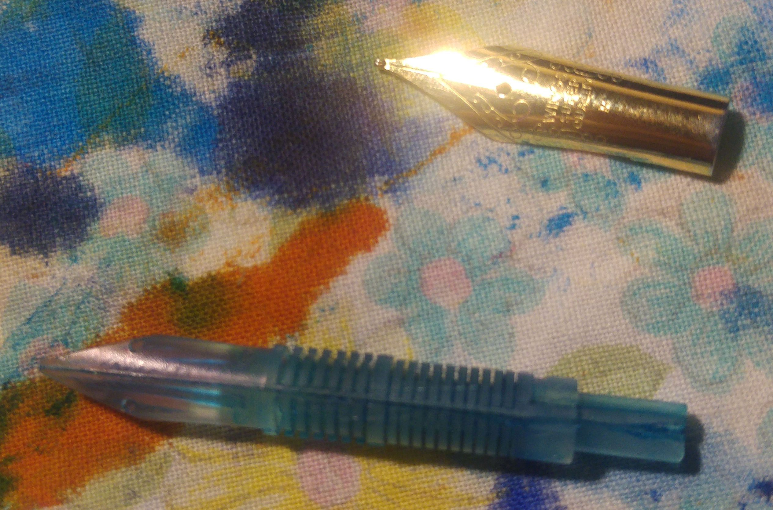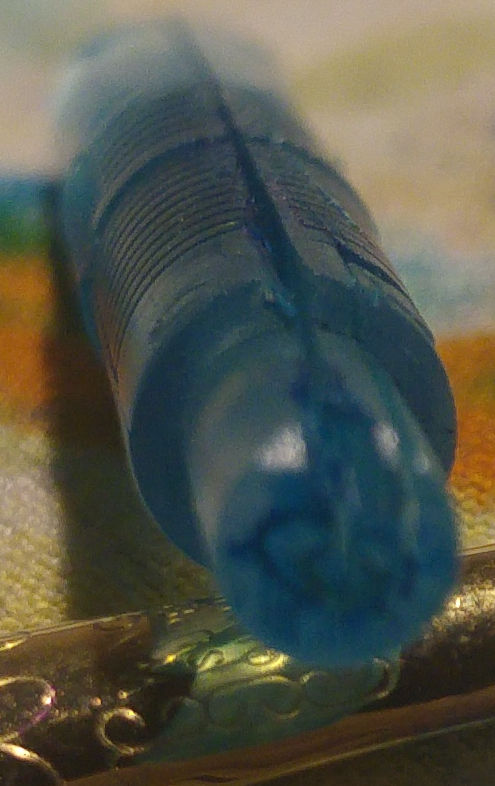 Comunque non mi sono dato per vinto e per non snaturare il prodotto ho preso una coppia di pennini per Wing Sung 698 misura Media a quasi 4€. Montati con estrema fiducia, sono risultati peggiori del Fine di serie. Scoraggiato, dopo mesi che la penna è rimasta abbandonata a raccogliere polvere, avevo quasi deciso di prendere una Pilot 78G (la preppy non ha il pennino dorato) da cui recuperare il gruppo scrittura. Nel momento stesso in cui stavo premendo il tasto “Compralo Subito” è scattato l’orgoglio del provetto “pennaio” che non ha voluto darla vinta a questa cinese. Ho smontato nuovamente l’alimentatore e ho pensato di renderlo più simile agli alimentatori di altre penne a stantuffo nostrane, quindi via il pirulicchio che và nel foro delle cartucce/converter, poi con una sottile lamina in ottone ho allargato un pochino il canale dell’alimentatore e con una limetta ho creato uno svaso a V nella parte posteriore per facilitare l’ingresso dell’inchiostro nel canale. Al pennino medio ho regolato per benino i rebbi (allineamento e apertura), poi con le micromesh ho rimosso un evidente problema di baby bottom e dato il giusto grado di feedback come piace a me. Rimontato il tutto… finalmente funziona in maniera accettabile, ancora qualche saltino ma niente di più orribile di qualche penna più blasonata come la mia Pelikan M150.