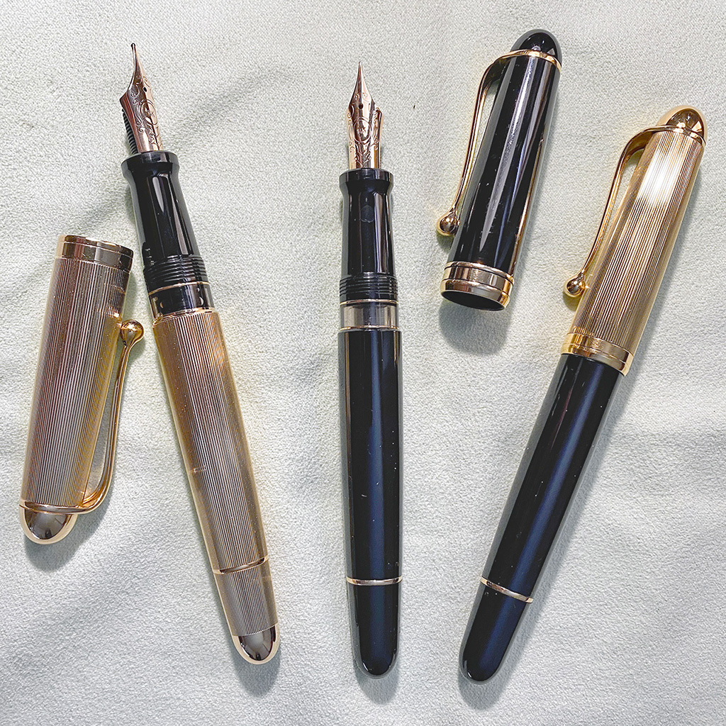Nel frattempo, dato che da bambino avevo la mania delle penne, ho aggiornato la raccolta ed oggi, a fianco della Hastil Vermeil dei diciotto anni, un tris di Aurora 88 (due stilo e una biro), una coppia di Meisterstuck LeGrand (roller e biro, però), sono arrivate una mezza dozzina di TWSBI, una Optima Auroloide, una Lamy 2000 e una M805 Stresemann.
