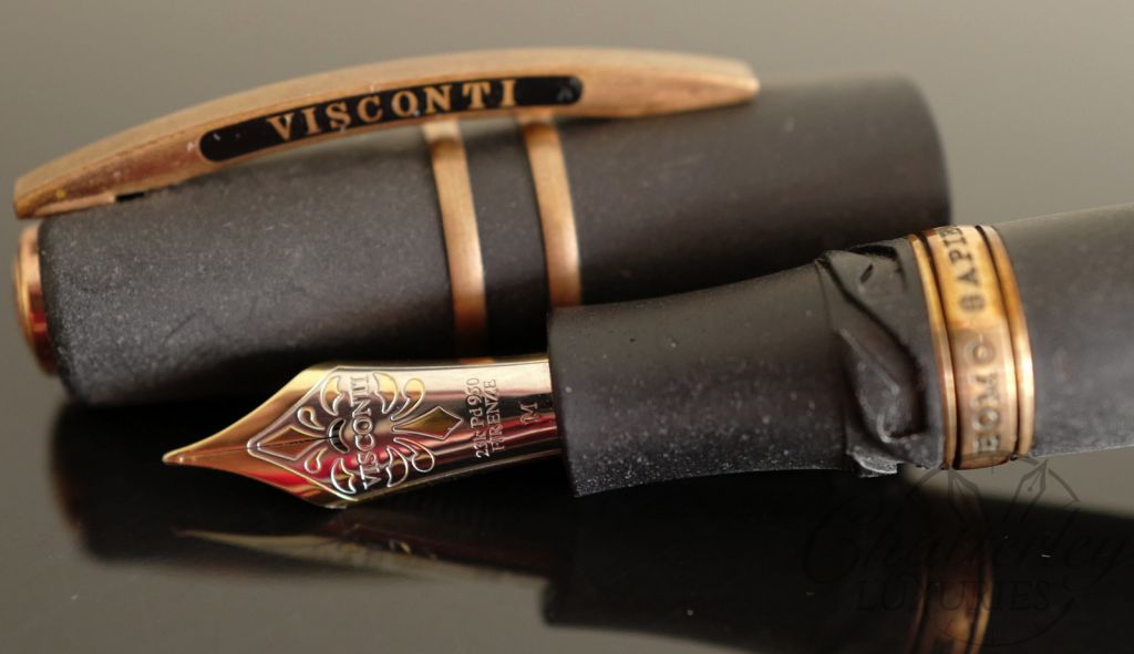 Una delle cose che mi pare contraddistinguere tutte queste penne di materiali "strani" è la sezione sproporzionata rispetto al corpo. Il che oltre al renderle in genere assai poco funzionali, per i miei guste le rende pure molto, ma molto brutte.