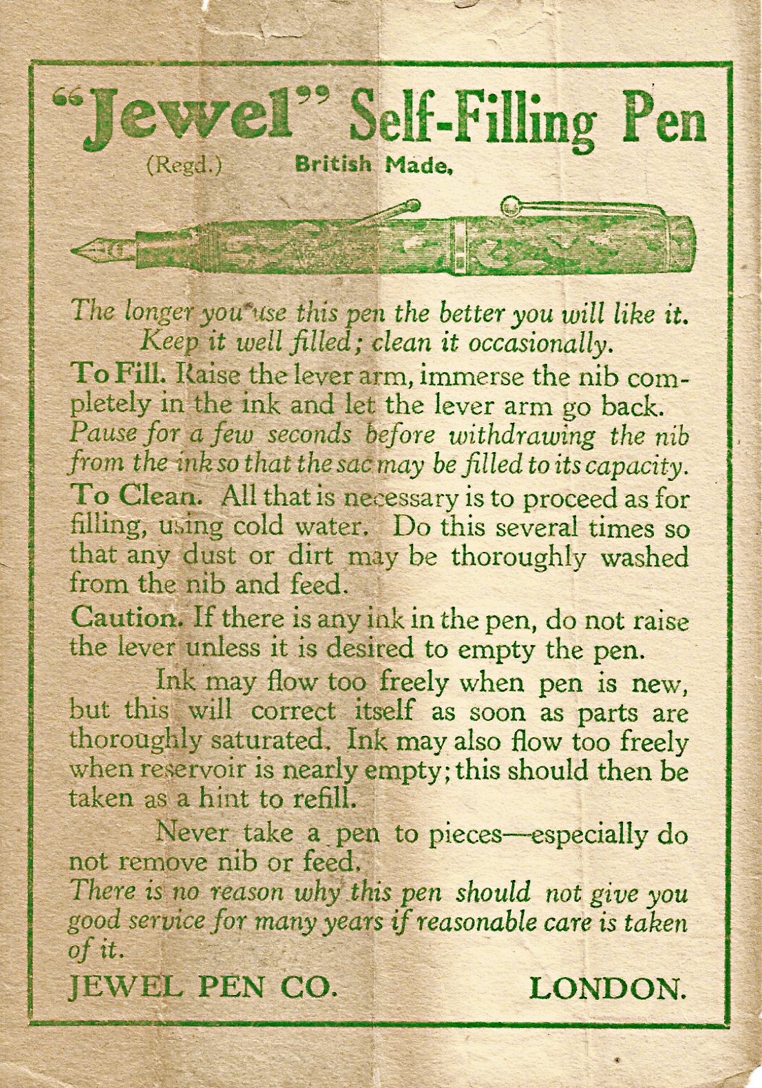 Nel 1939 la Jewel Pen Company fu acquistata dalla British Pens Ltd; continuò a produrre fino a quando, nel 1951, chiuse definitivamente.
