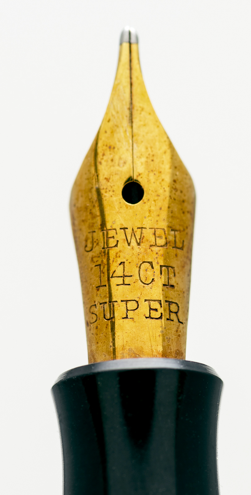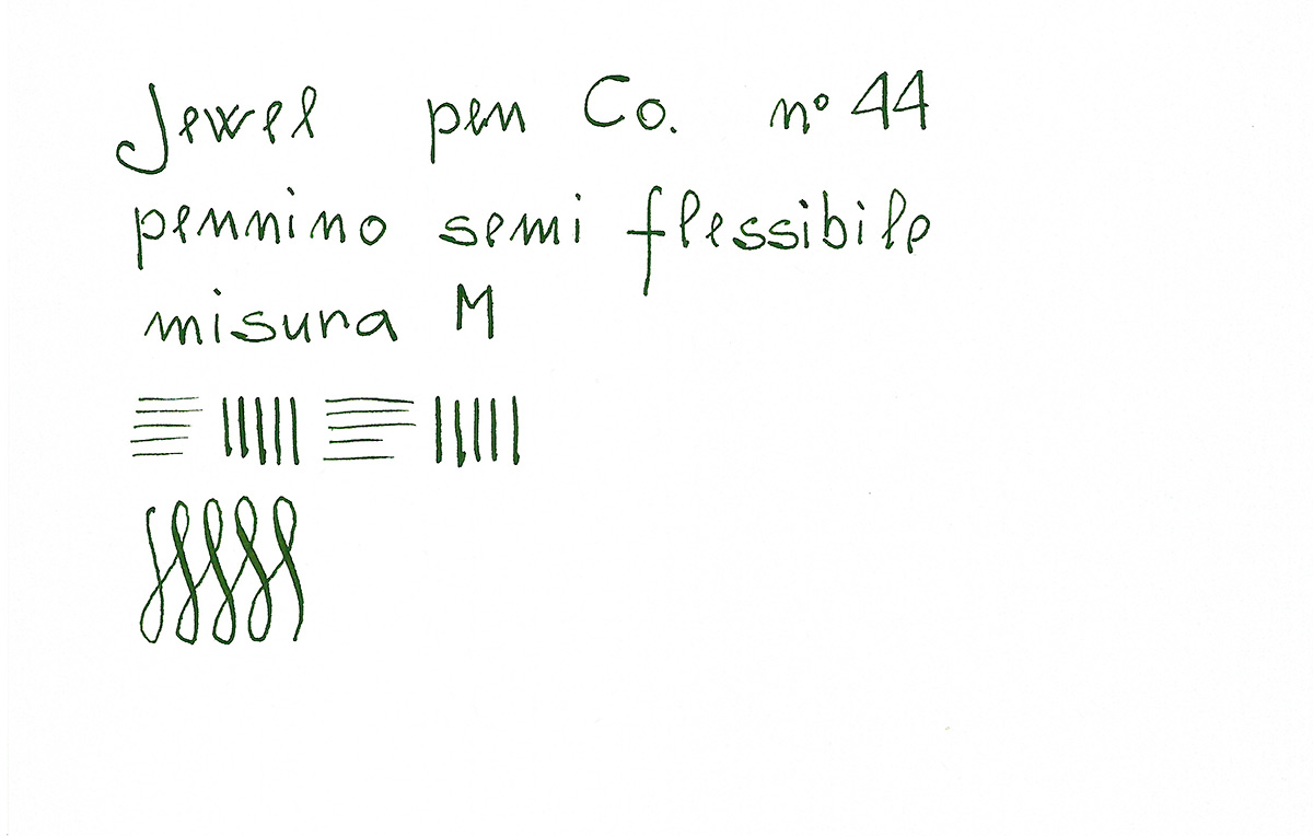 Il pennino è un "Jewel 14ct Super", un pennino semi-flessibile, non particolarmente scorrevole, comunque grazie alla sua flessibilità è divertente scriverci.