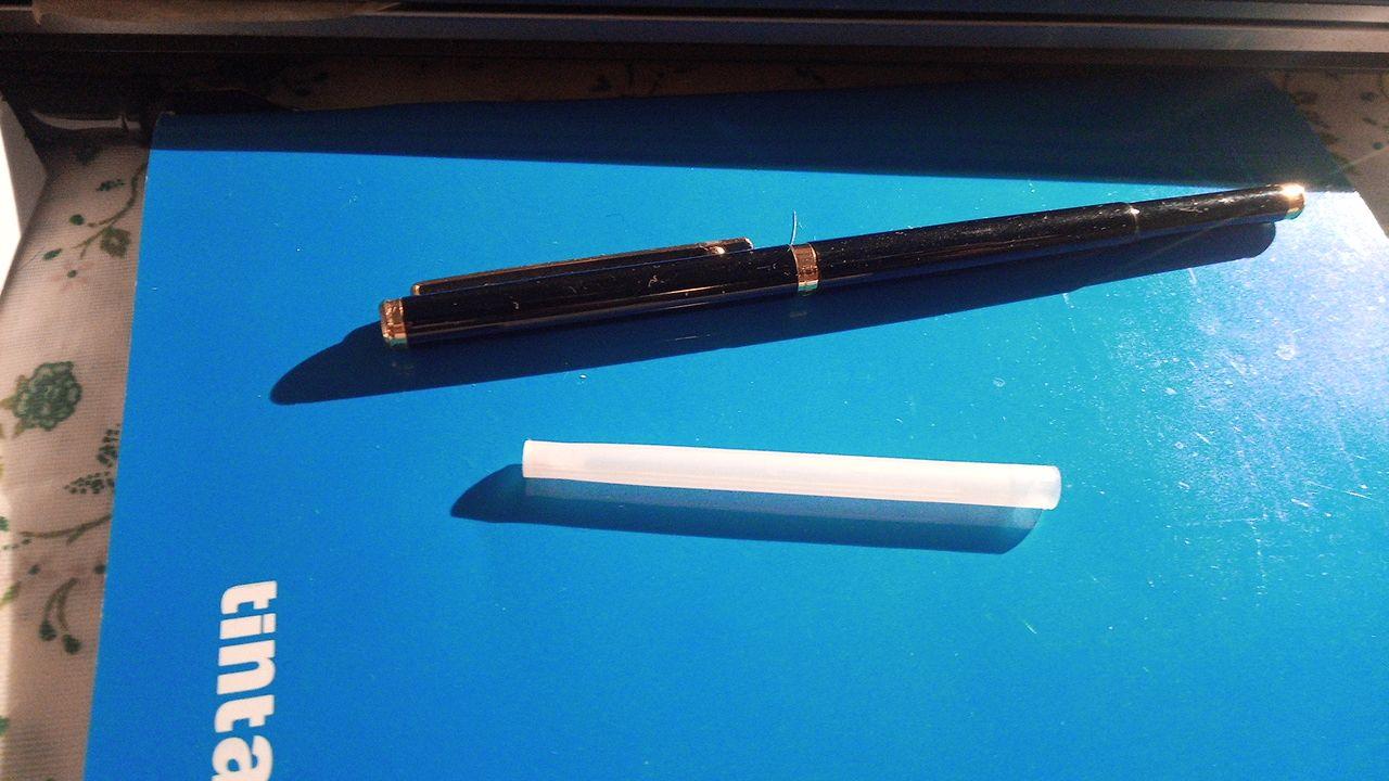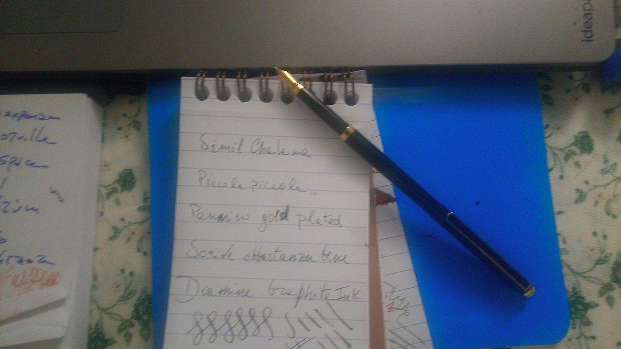 Le dimensioni sono quelle di una Chalana al millimetro, la cartuccia (come si vede in foto) e' una di quelle che la chalana monta, anche l'attacco alla cartuccia e' molto simile. Il pennino pero' ha scritto semplicemente "Gold Plated" su di esso e l'unica altra scritta e' un "Maxtto" (o qualcosa di simile) sulla veretta del cappucccio.