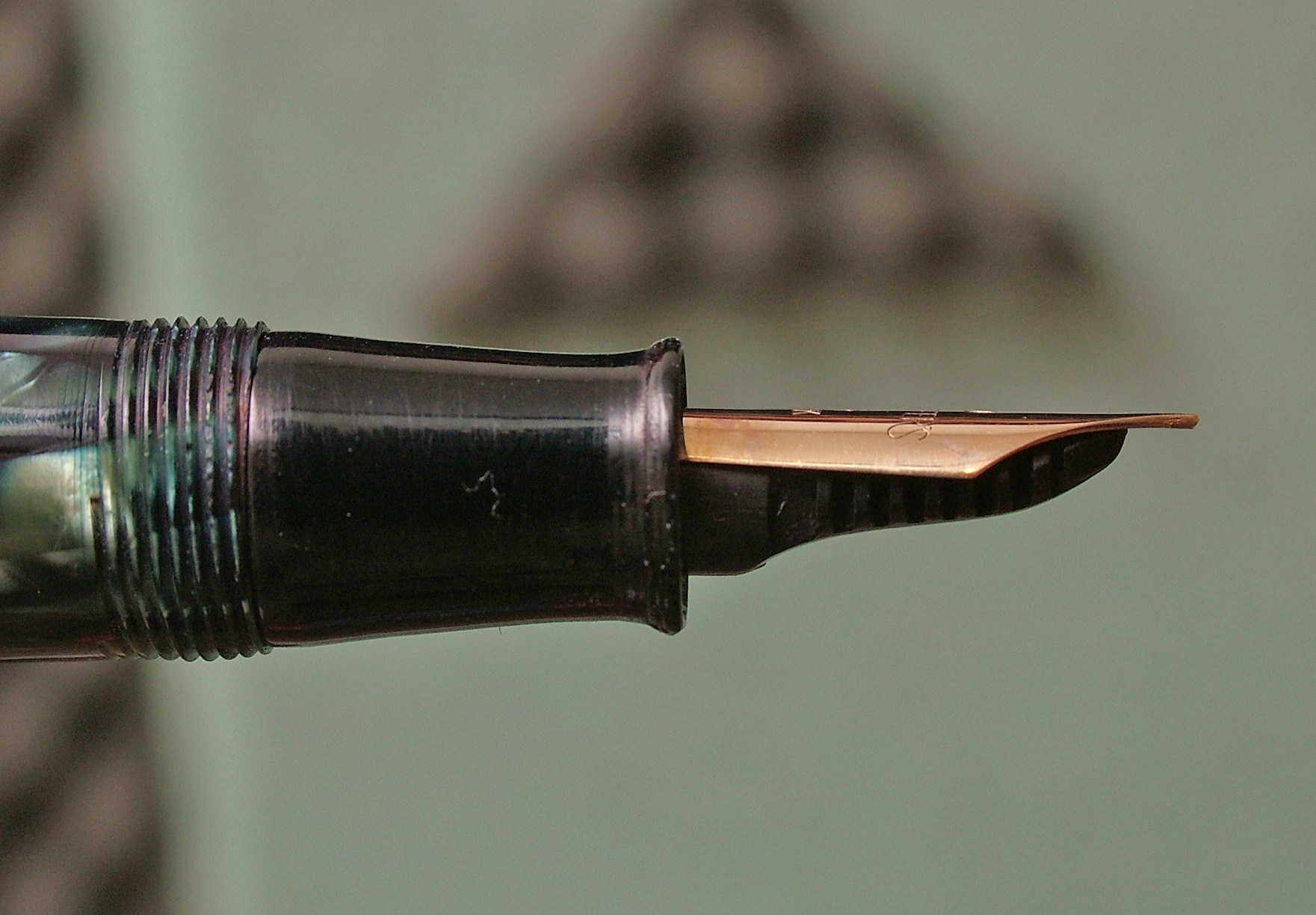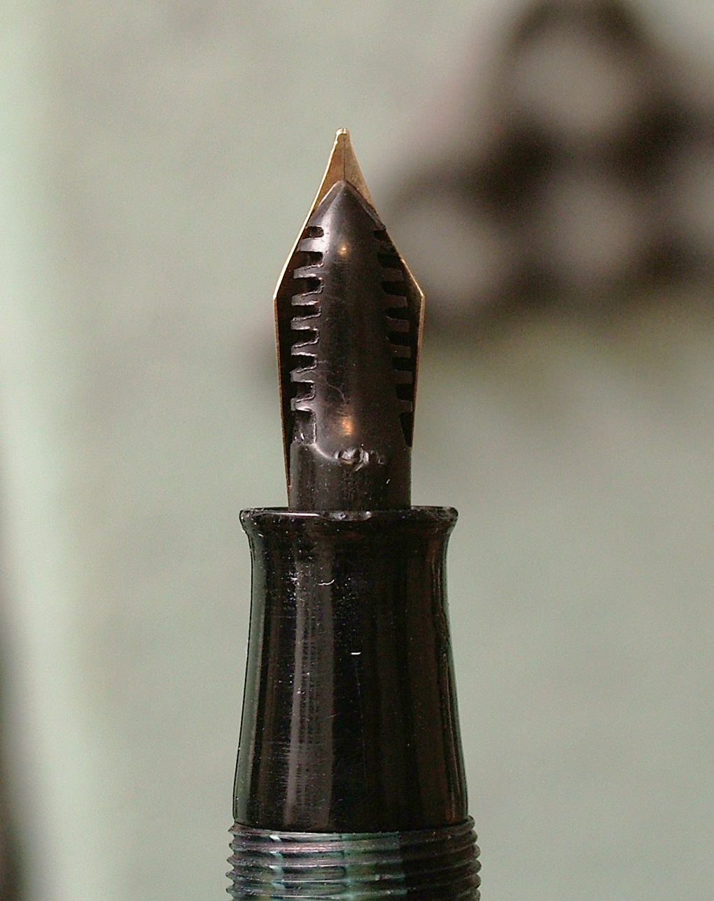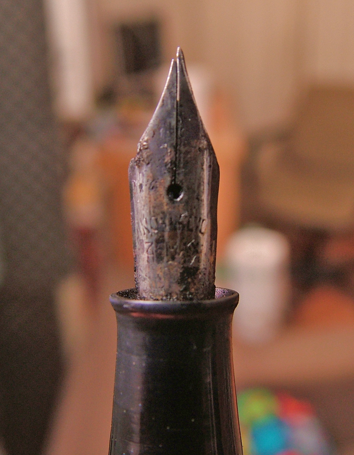 Pennino con una punta rotta e mangiato dalla ruggine inutilizzabile, sostituito con uno in oro.