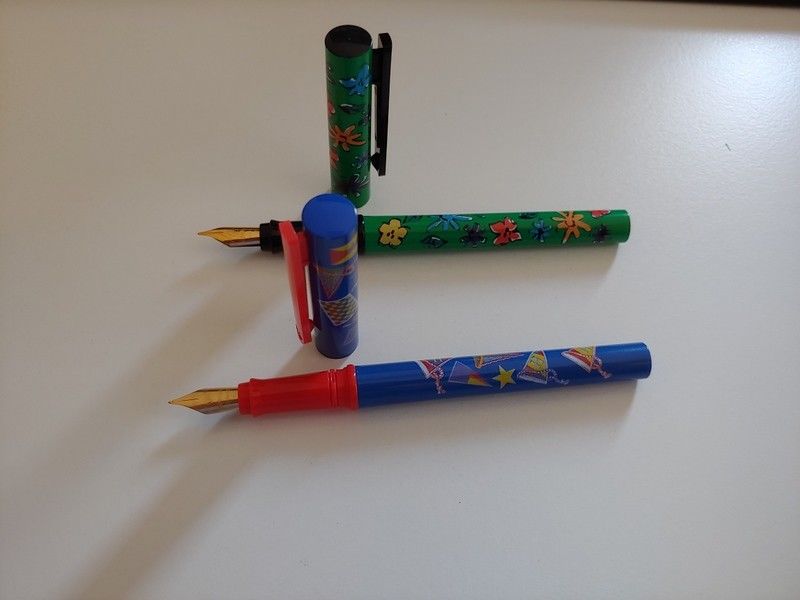 Comunque se a posto mi sembra che scrivano bene, un bel tratto abbastanza fino. Mi trovo solo un po' in difficoltà con la presa un po' alta, dovuta al pennino piuttosto lungo, sono abituato ad avere la presa più in basso.