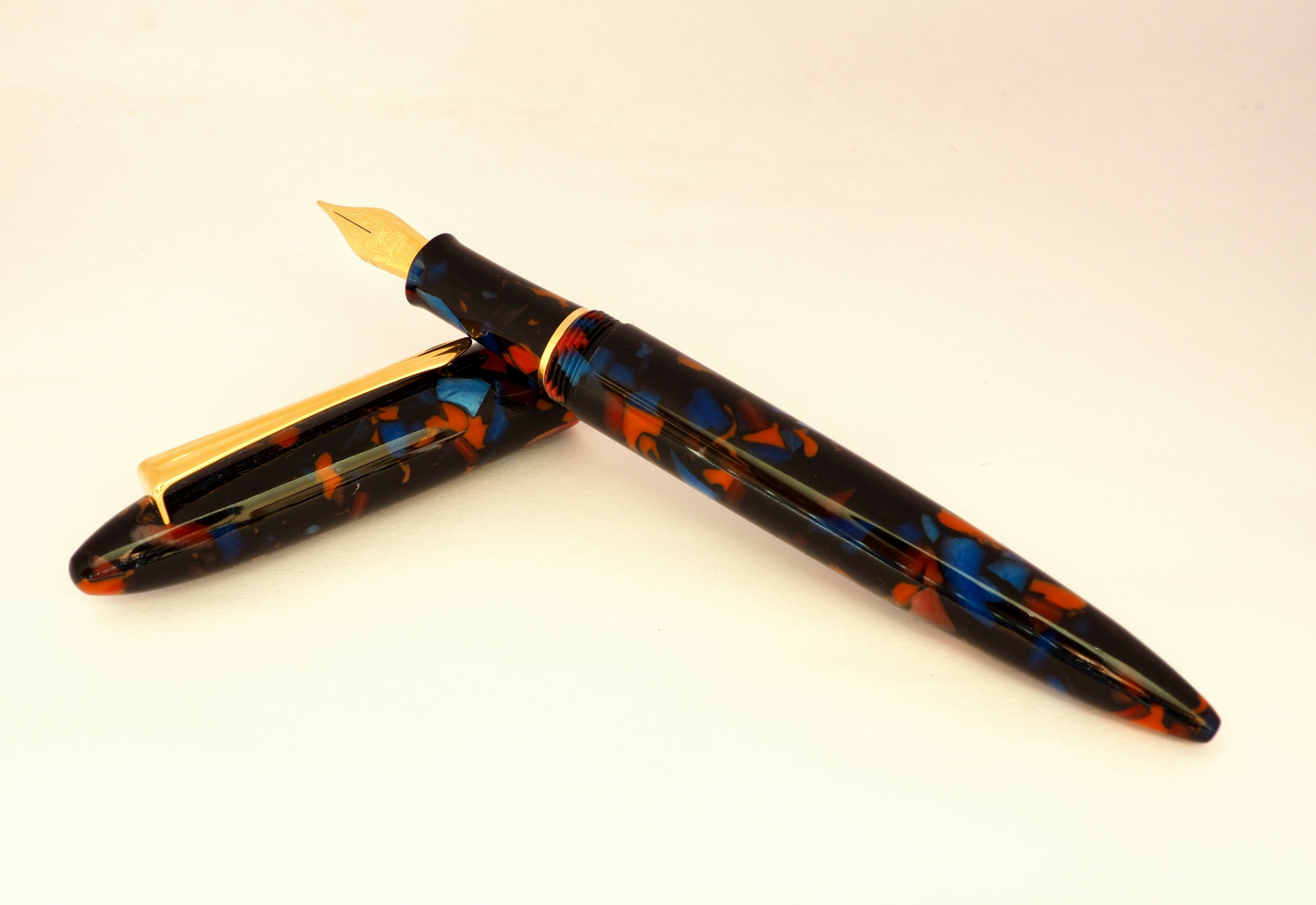 La Procolor la volevo Stardust ovvero quel blu scuro con puntini bianchi che nelle intenzioni del produttore richiama il cielo stellato e la M100 la volevo Marrone-Ambra. Quando ho acquistato la Procolor il venditore qualche ora dopo in maniera molto professionale e profondendosi in scuse mi ha informato che mancava il colore da me scelto e mi ha proposto il rimborso o l’altro colore. Visto che già l’avevo pagata e che, amante dei tratti fini, mi vedevo già in mano la mitica Sailor (nel senso che avevo sentito tesserne le lodi in lungo e in largo), non ho rinunciato e mi sono accontentato dell’altro colore. Per la M100 la feccenda é più travagliata (e non comprerò mai più da quel venditore...) infatti al primo invio ha sbagliato indirizzo e la penna non é mai arrivata. Al secondo tentativo é arrivata ma del colore sbagliato... bello anch’esso ma sbagliato.