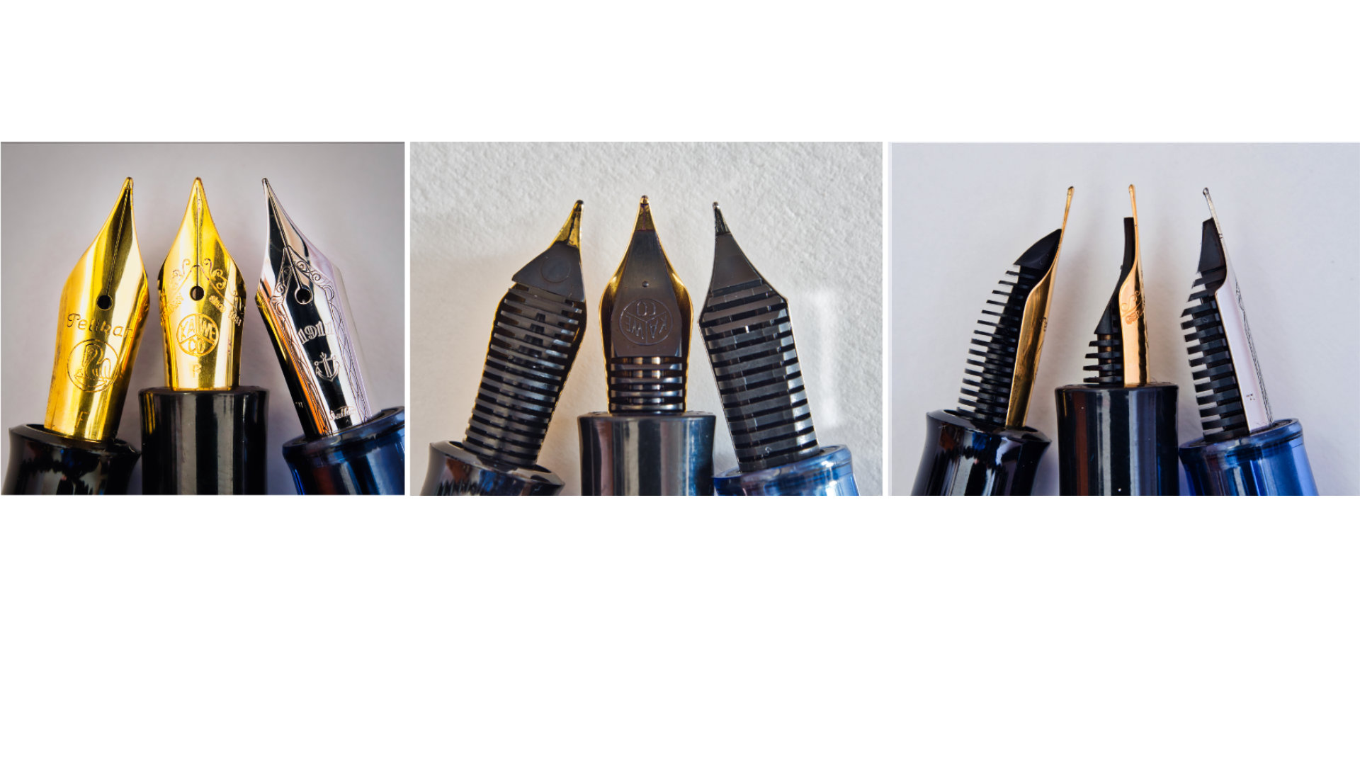 confronto di pennini "F", da sinistra Pelikan M200 - Kaweco Sport - Sailor Procolor 500