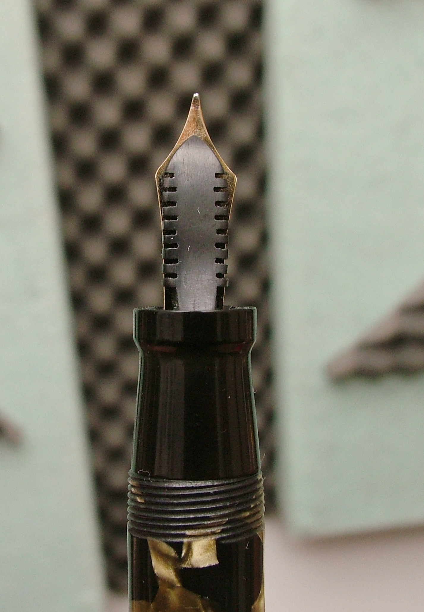 Questa è la categoria di penne che io amo! Materiali ottimi, costruzione semplice, pennino oro 14 Kt spesso ben flessibile! E siamo di fronte ad una semplice "sottomarca" di Aurora... Grazie maxpop.