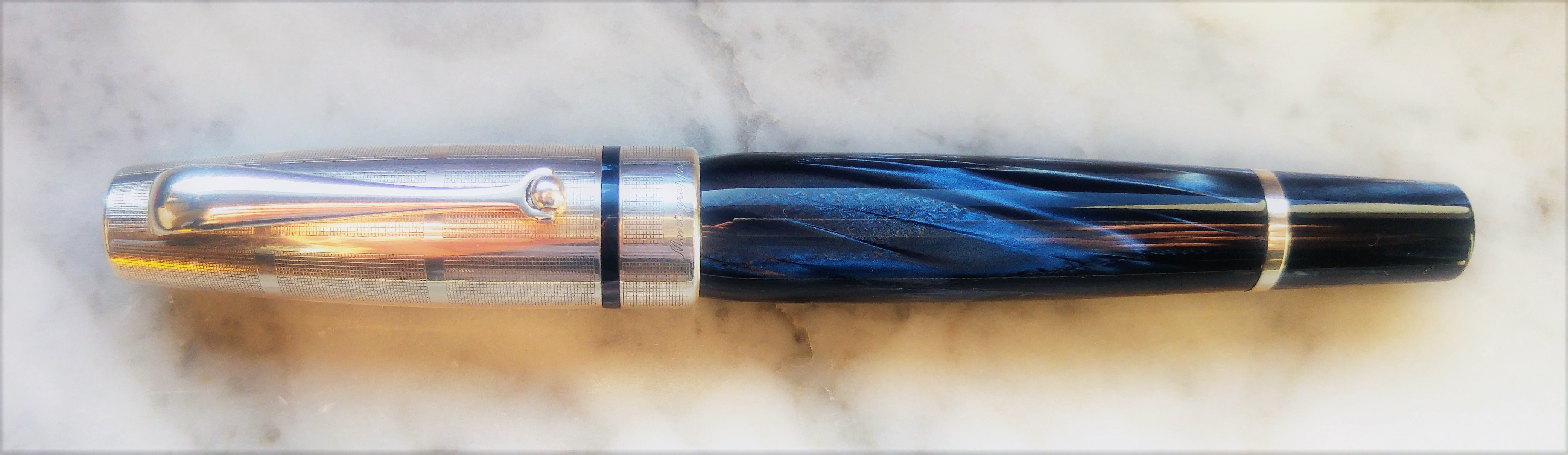 Oramai preso dal vortice della Montegrappa mi sono messo alla caccia di una Miya, pensavo di prenderne una nella meravigliosa celluloide Montegrappa Rossa, poi sono incappato in una Miya Argento blu scuro ed è stato amore a prima vista.