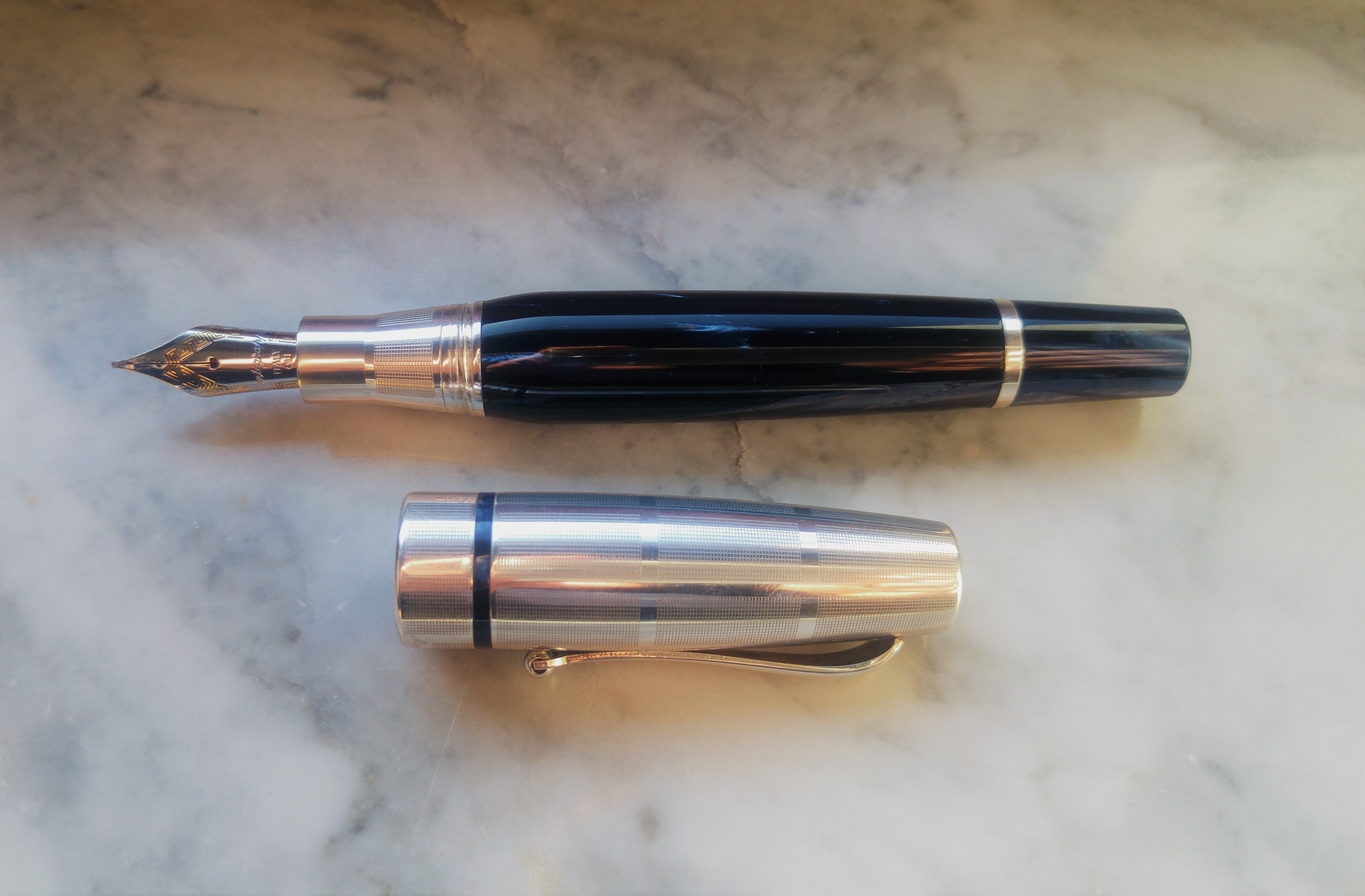 La discendenza dalla Classica è molto evidente: il fusto che morbidamente cresce verso il centro nel punto in cui si unisce con la sezione, le estremità piatte e la magnifica celluloide ne fanno una penna importante benché lunga solo 132mm con cappuccio chiuso.