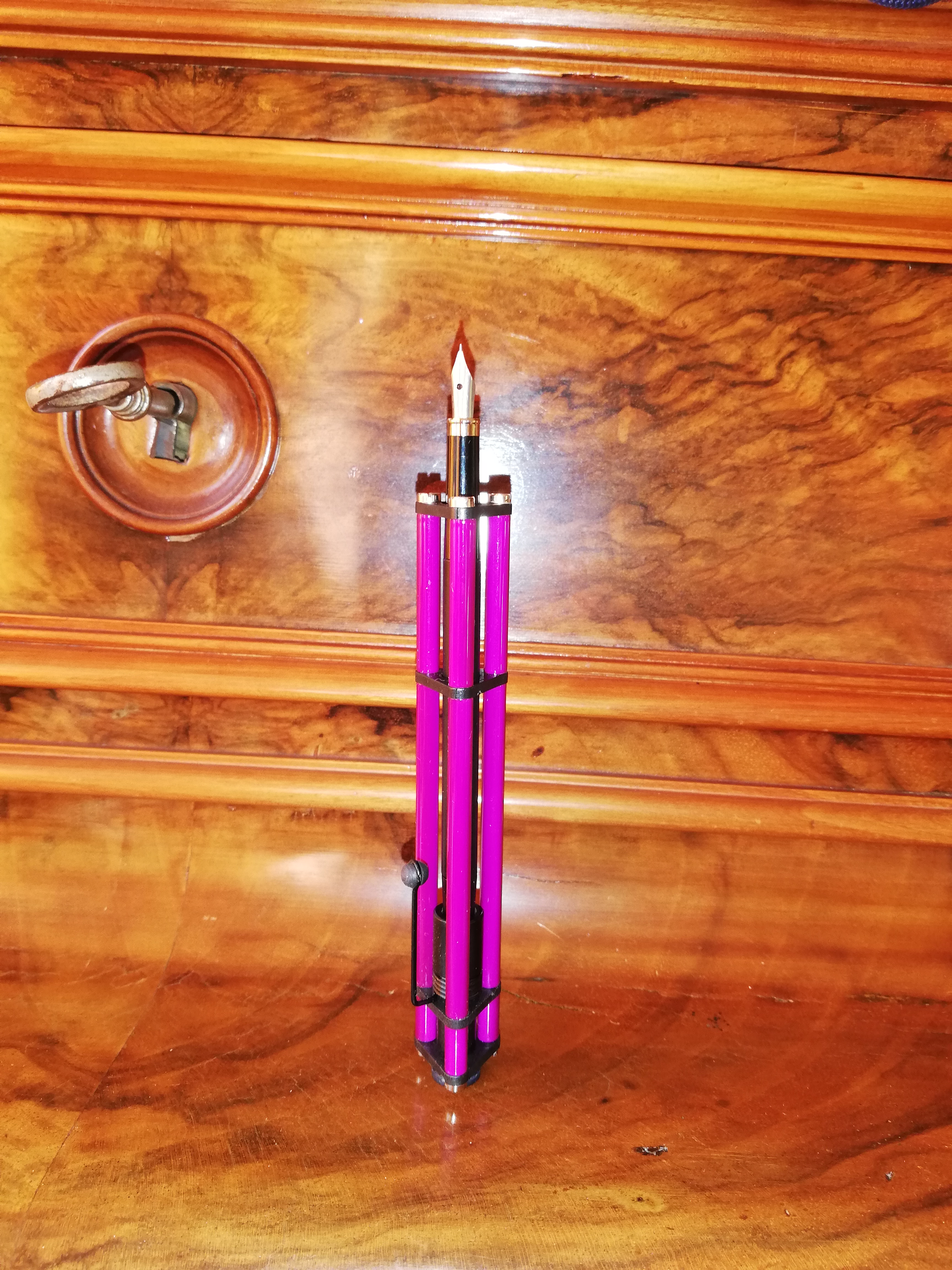 E' una penna stilografica molto particolare, che punta tutto sul design, assolutamente originale. La penna nella sua prima versione, chiamata Revolution, venne progettata nel 1978 da Sergio Carpani come oggetto commemorativo della costruzione del Beaubourg di Parigi. Il creatore ne raccontò la genesi: