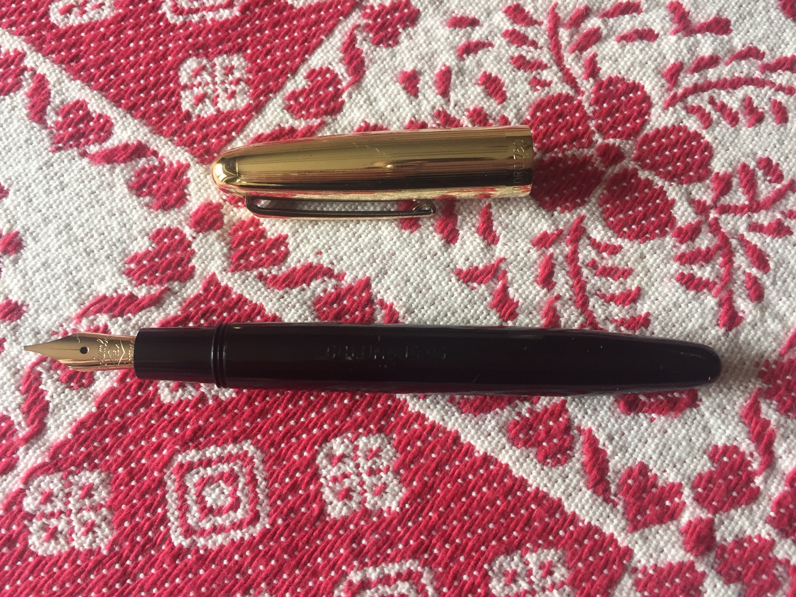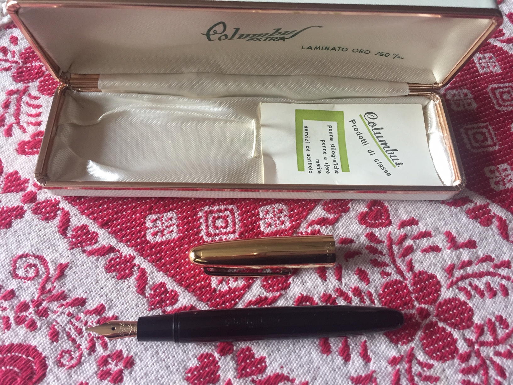 Nuovi arrivi in settimana, una Sheaffer Admiral, caricamento Touchdown, pennino in oro 585 misura 5, con matita meccanica (probabilmente una parure, made in Canada), tutte e due in buon stato funzionanti; una Columbus 90 (dicitura impressa sul fusto), misura lady, pennino oro e caricamento a stantuffo, con scatola e istruzioni per l'uso mai usata.
