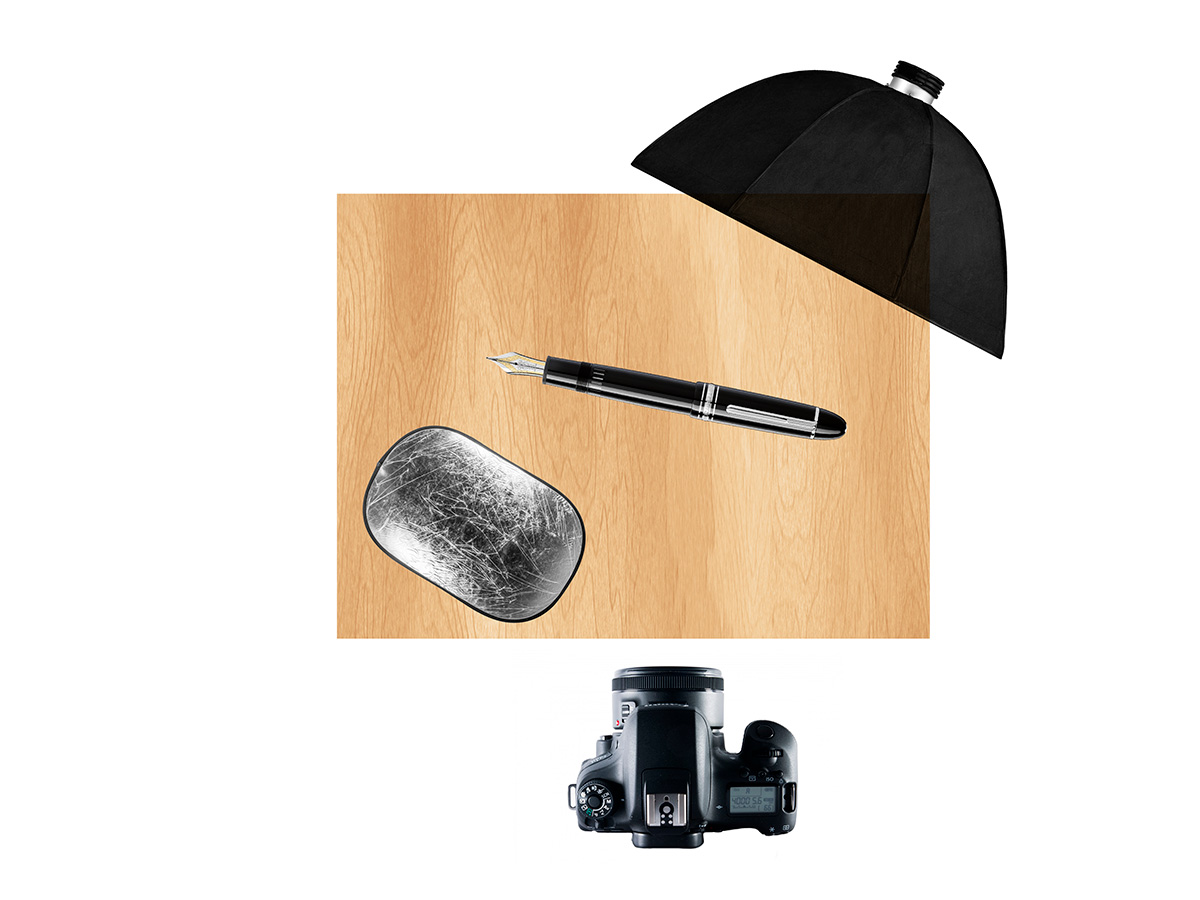 Disponiamo l'oggetto su una delle diagonali lunghe del fotogramma, la custodia della penna è un parallelepipedo, fotografarlo frontalmente equivale a fargli perdere una buona dose di tridimensionalità.