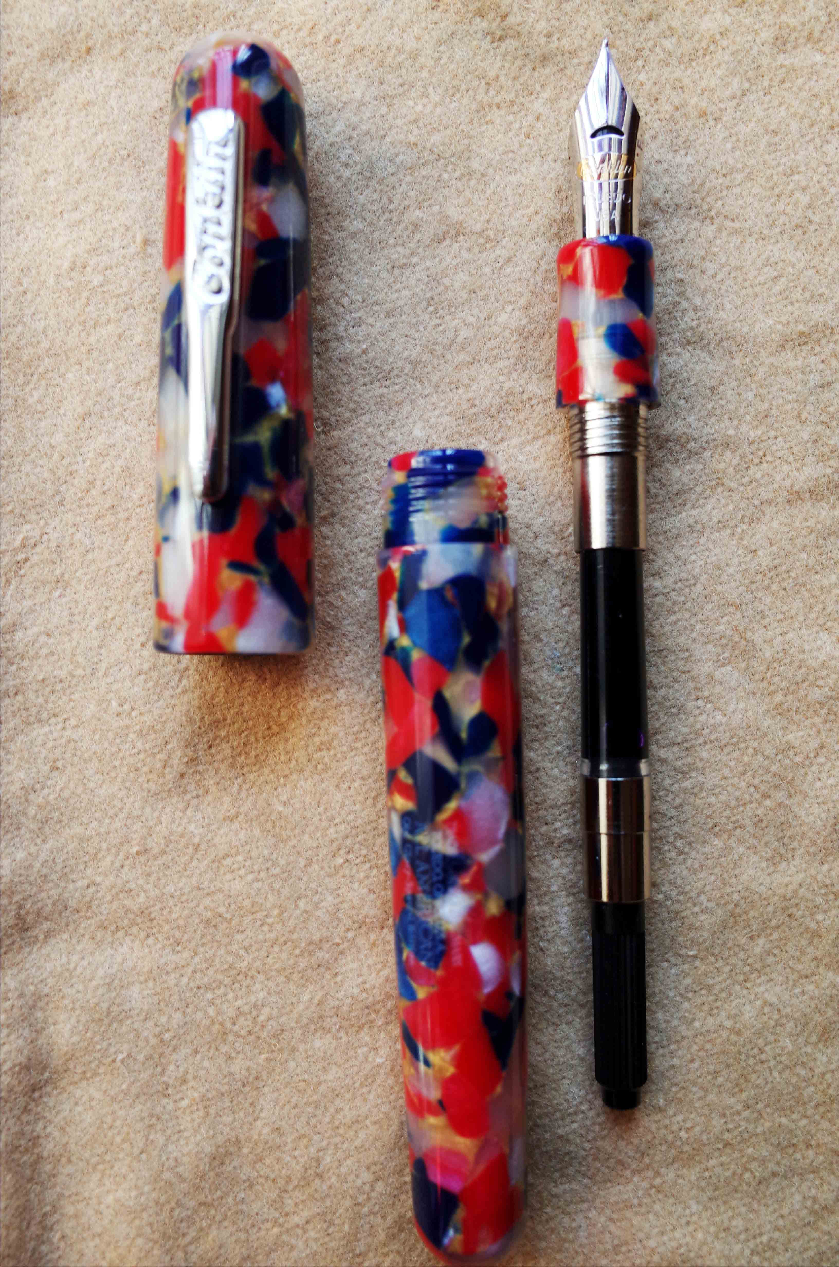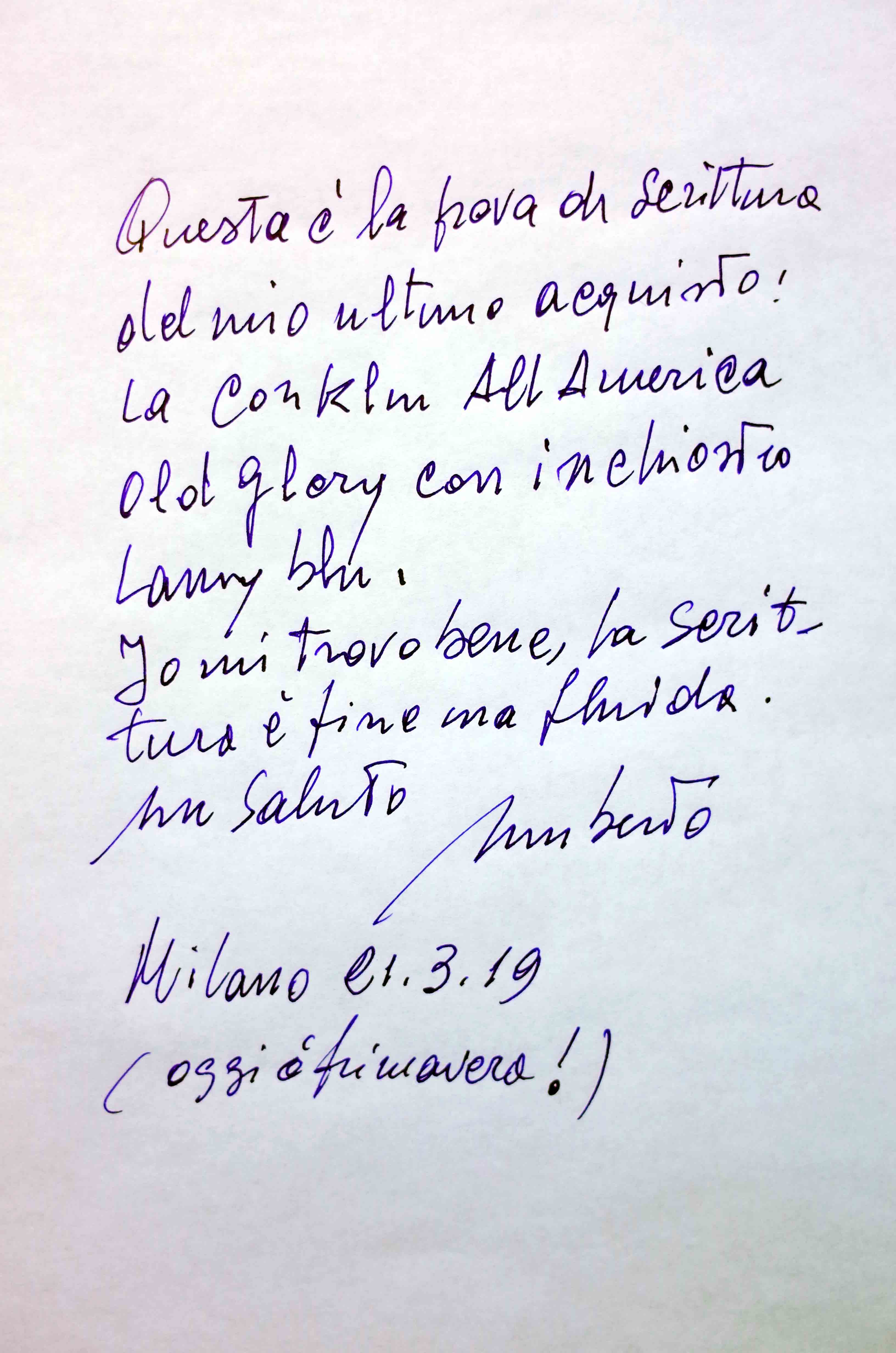 Ho sempre snobbato le nuove Conklin per il loro rifarsi a modelli del passato senza avere nessuna continuità produttiva. Però questa è classica che non si prende sul serio e si veste con livree sgargianti. Mi piace. :D