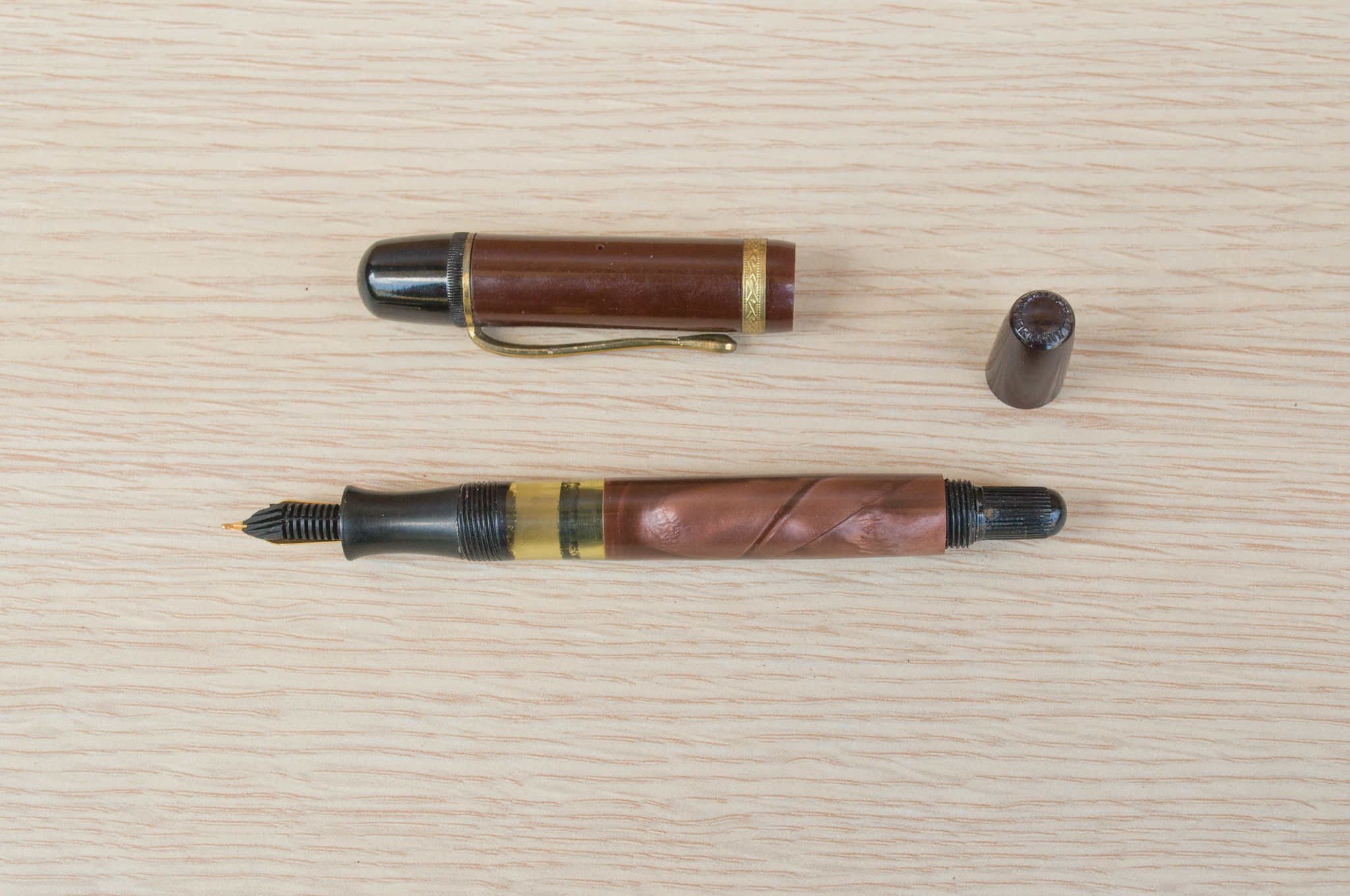 - Il cappuccio è di colore analogo al corpo penna, ma è in tinta unita, mentre il corpo sembra essere in celluloide con variazioni di tono