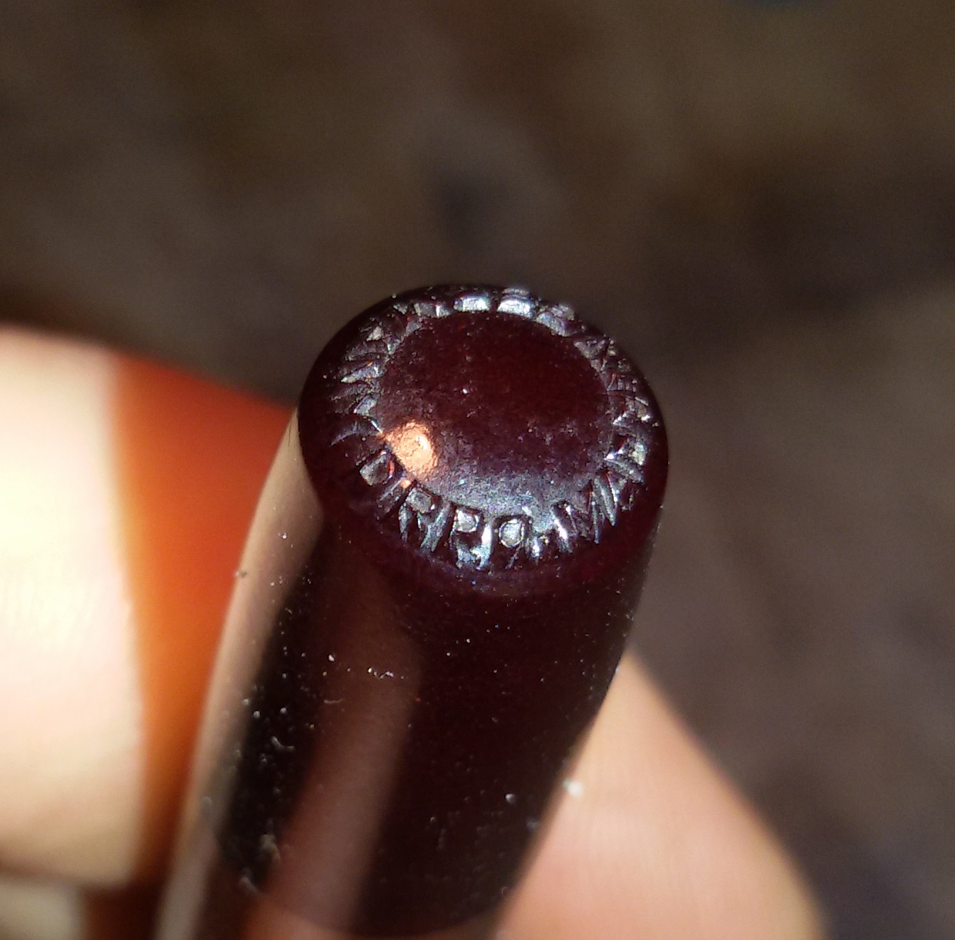 Ho questa anonima tedesca che sembrerebbe ispirarsi alla Pelikan 100N non ha scritte su cappuccio e corpo, l'unica scritta è sul fondello: e recita: "made in germany drp" più un quarto carattere che non capisco, sembra una o puntata.