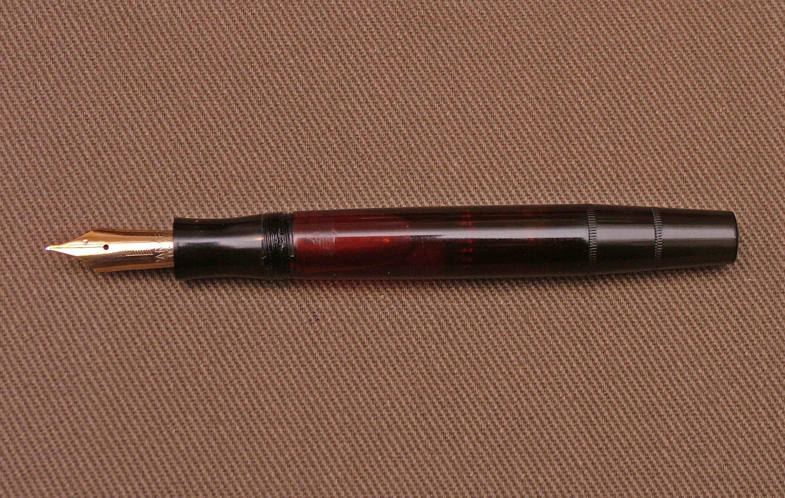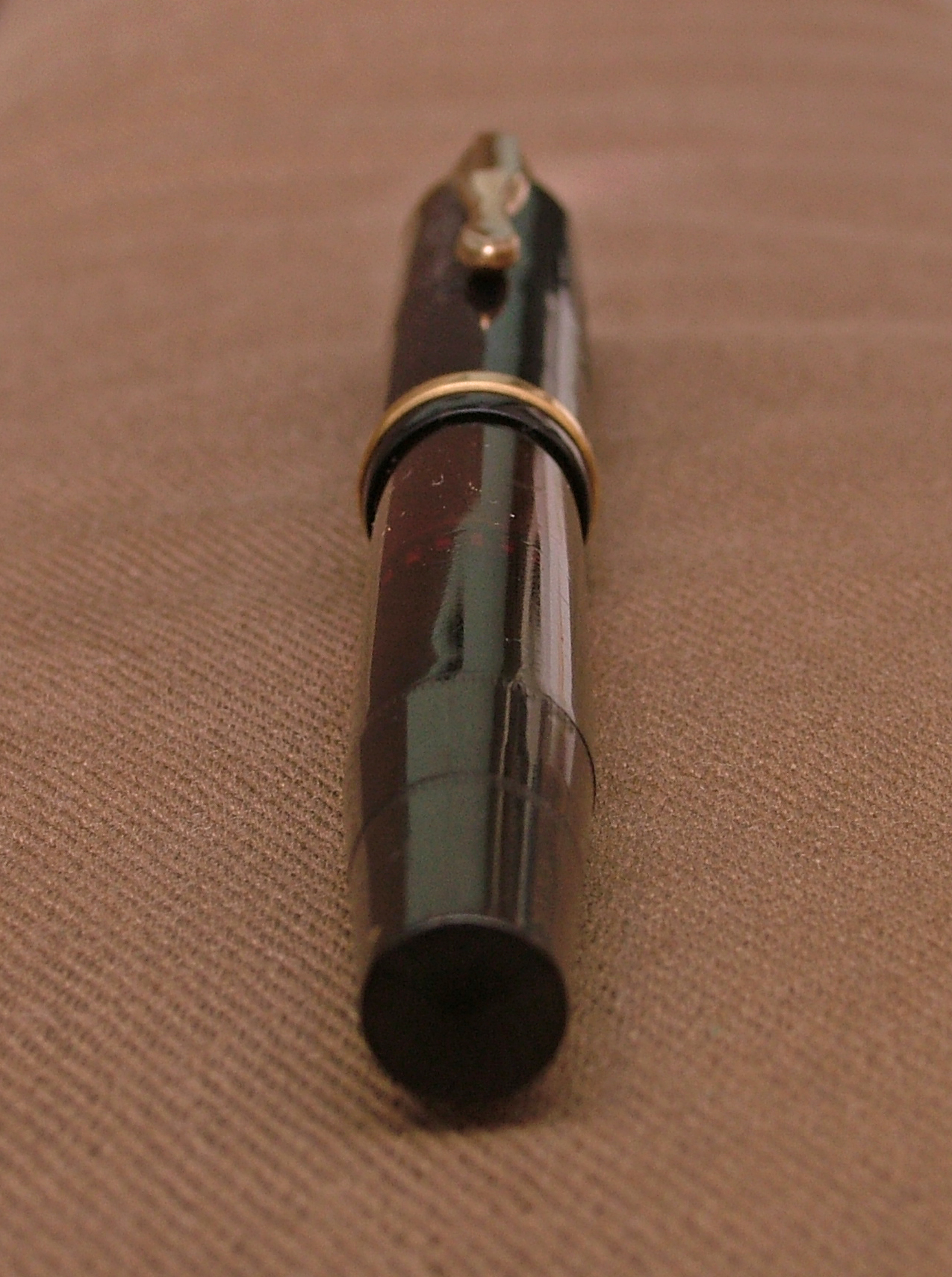 Purtroppo manca del suo pennino originale che cercherò anche se la vedo molto dura. Intanto c'è un pennino di una Parker Vacumatic misura maxi , che dovrebbe essere la grandezza giusta.