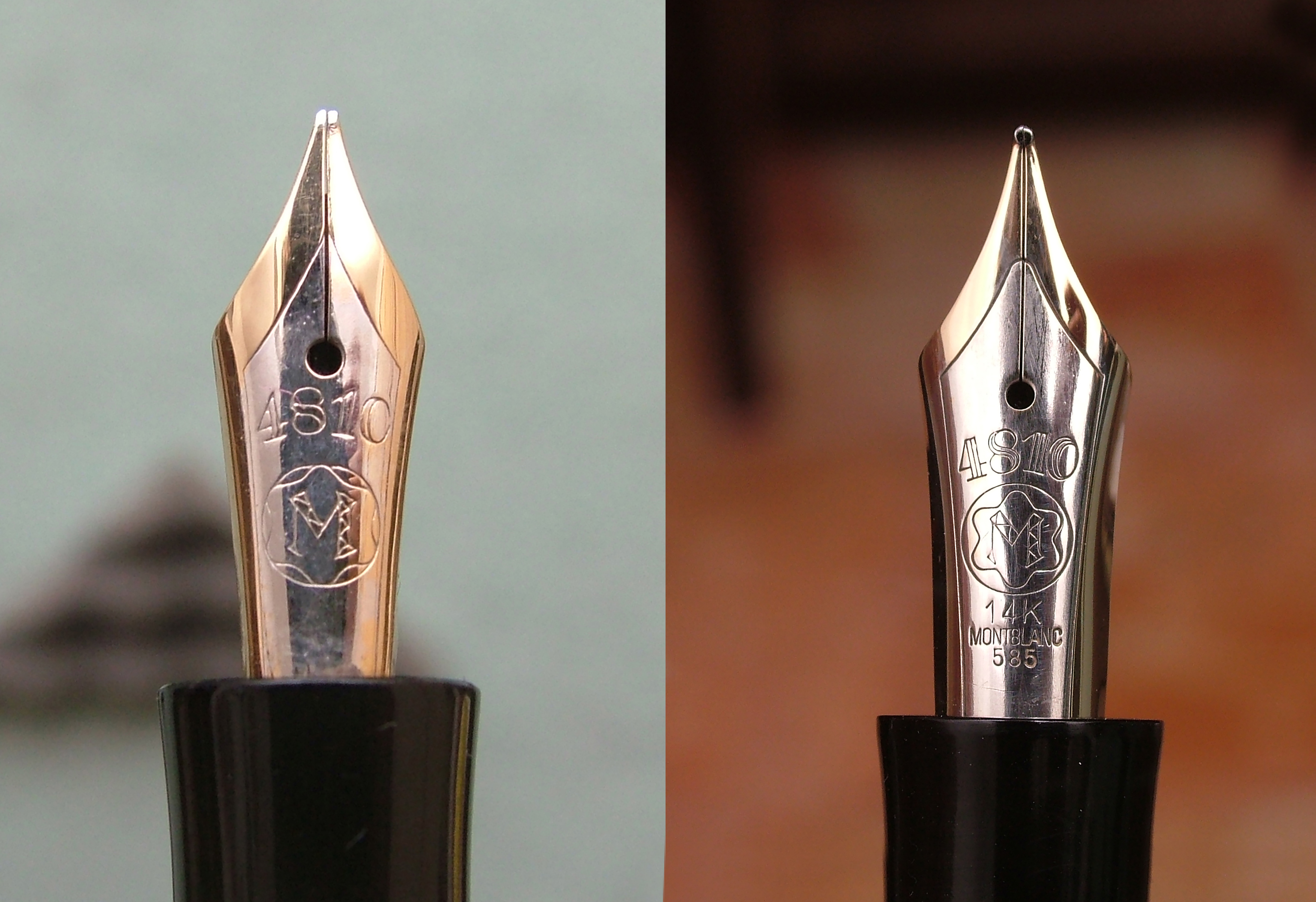 Si tutto esatto!! La caratura infatti è spostata più in basso tanto è vero che nei pennini MB d'epoca in acciaio (periodo bellico quindi) se ancora con doratura risulta difficile riconoscerli da quelli in oro. A parte tutte le differenze che hai detto, corrette peraltro, la caratura di questi pennini, almeno di quelli che ho visto io, era sempre 14 C o, in quelli montati su penne MB commercializzate in Francia, 18 C.