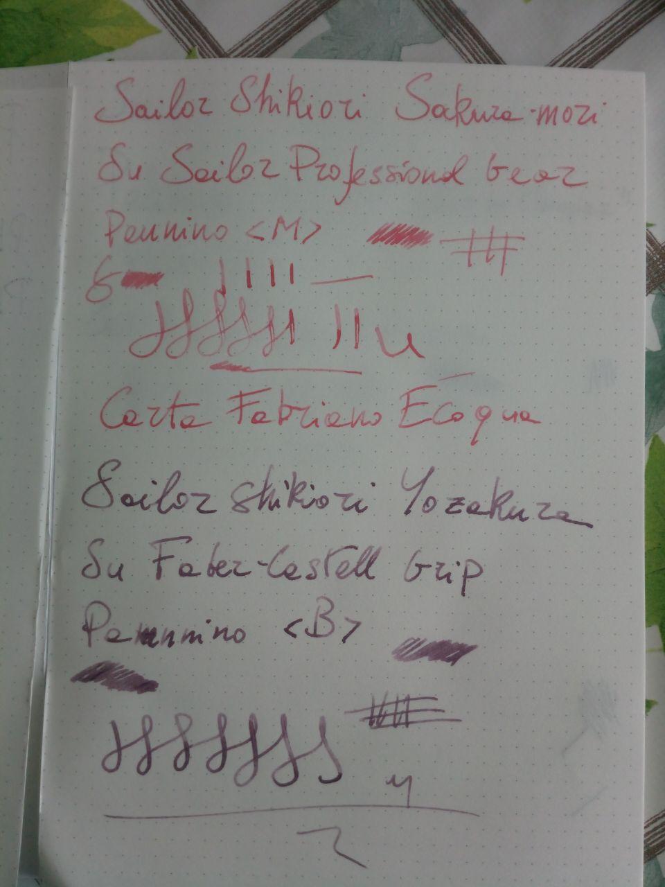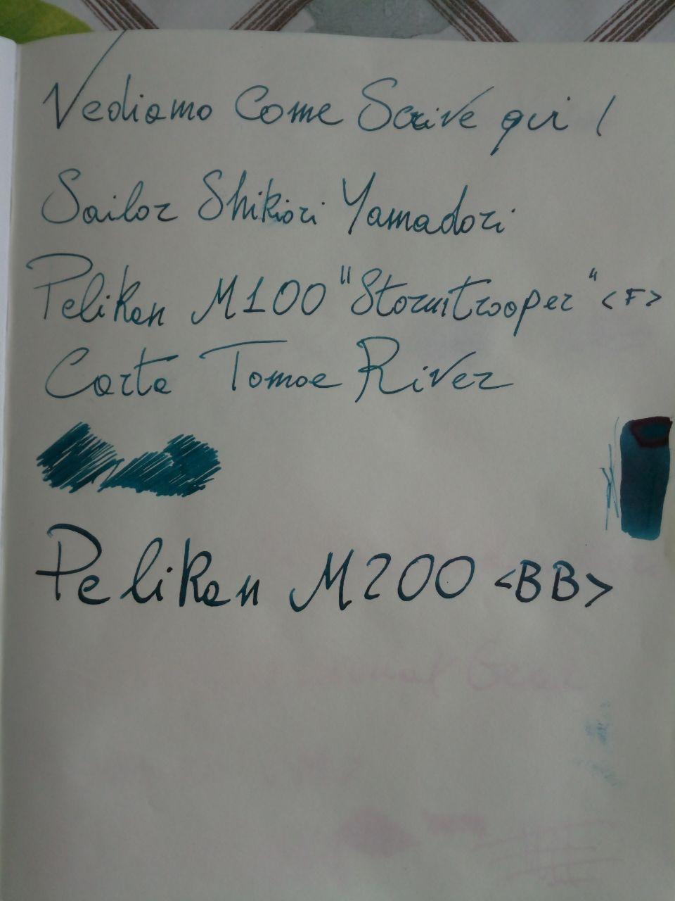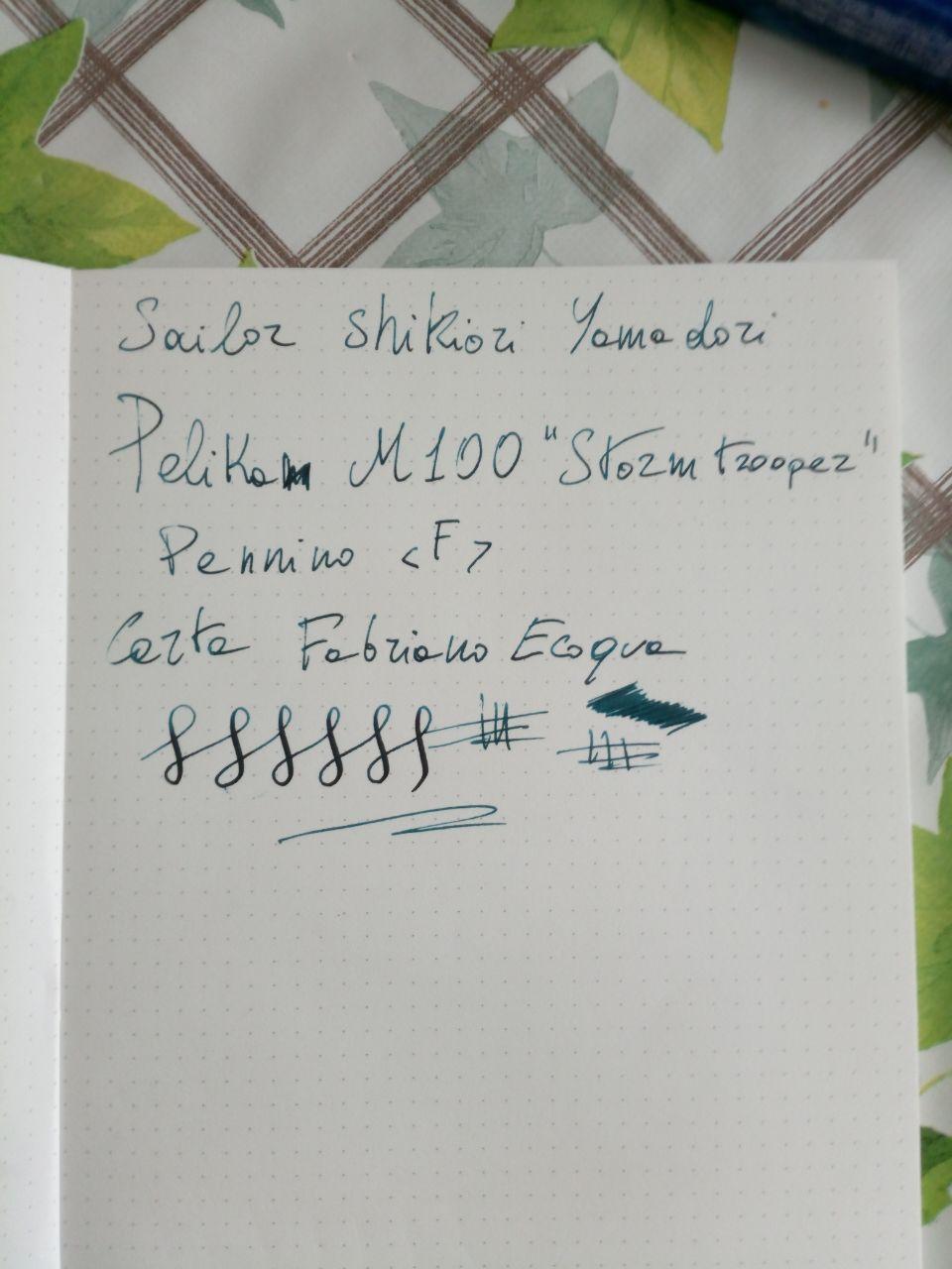 Ho caricato tre penne e ho usato due carte: Una Fabriano Ecoqua e una Tomoe River. Le foto sono al cellulare e a luce naturale, purtroppo non posso fare di meglio al momento (scanner e stampante fanno le bizze).